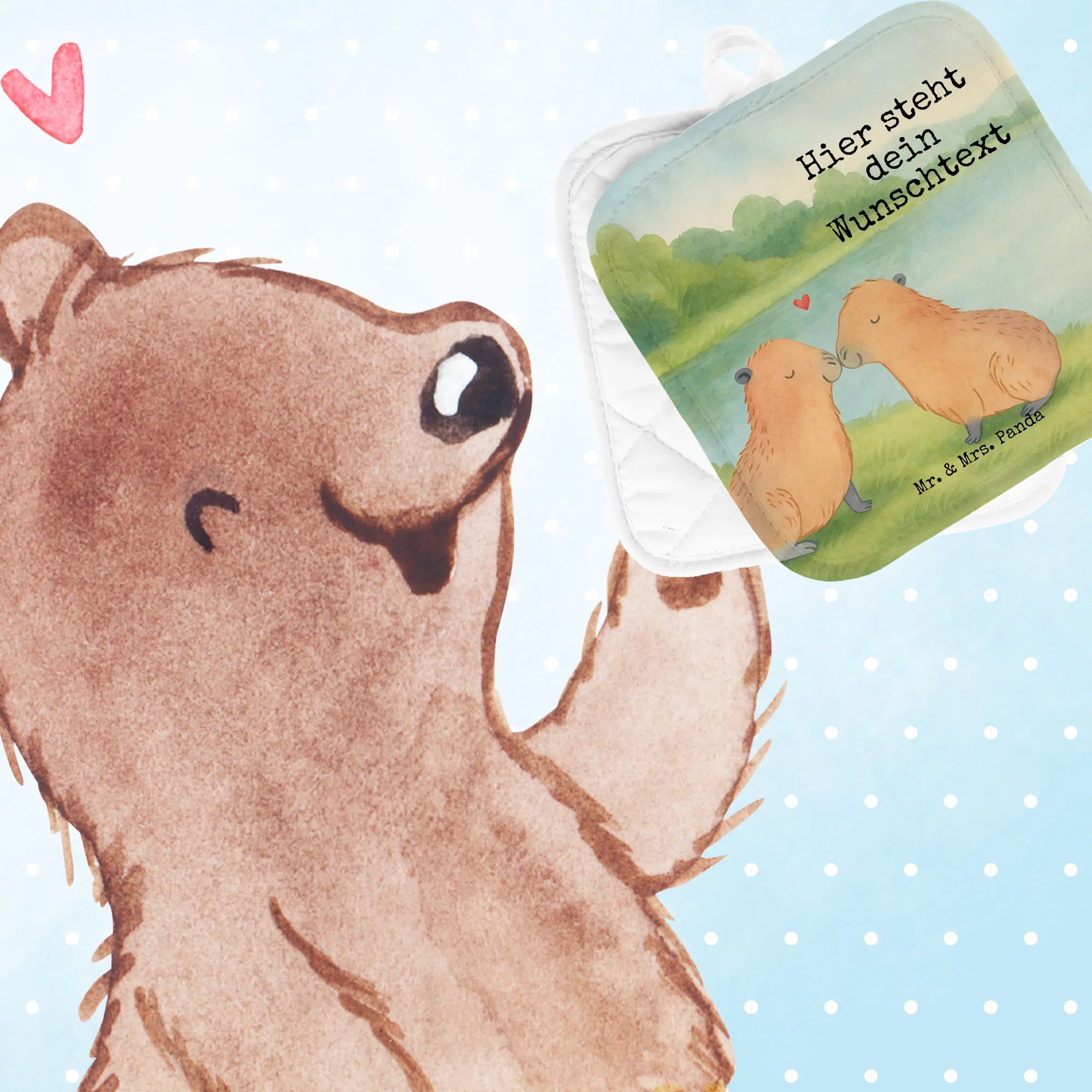 Personalisierte Topflappen Capybara Liebe Design