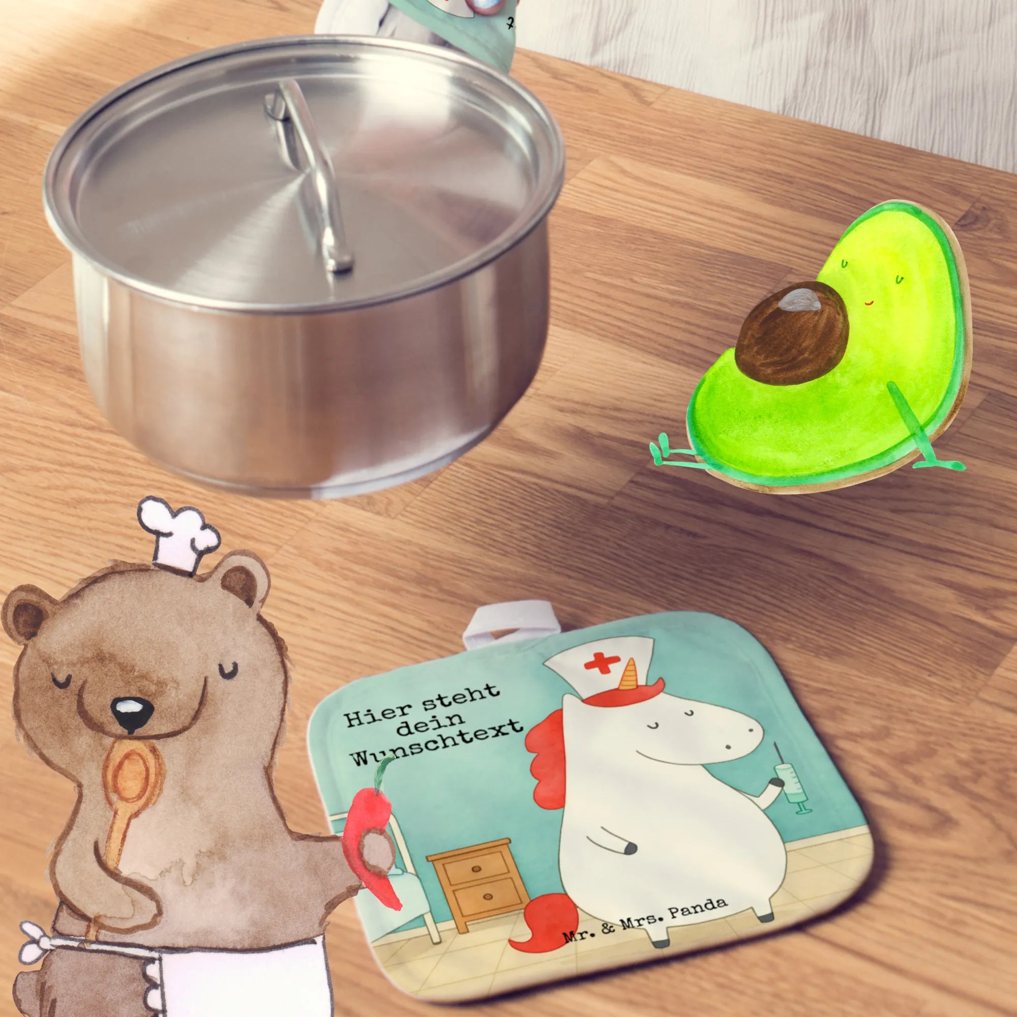 Topflappen selbst gestalten Einhorn Krankenschwester Design