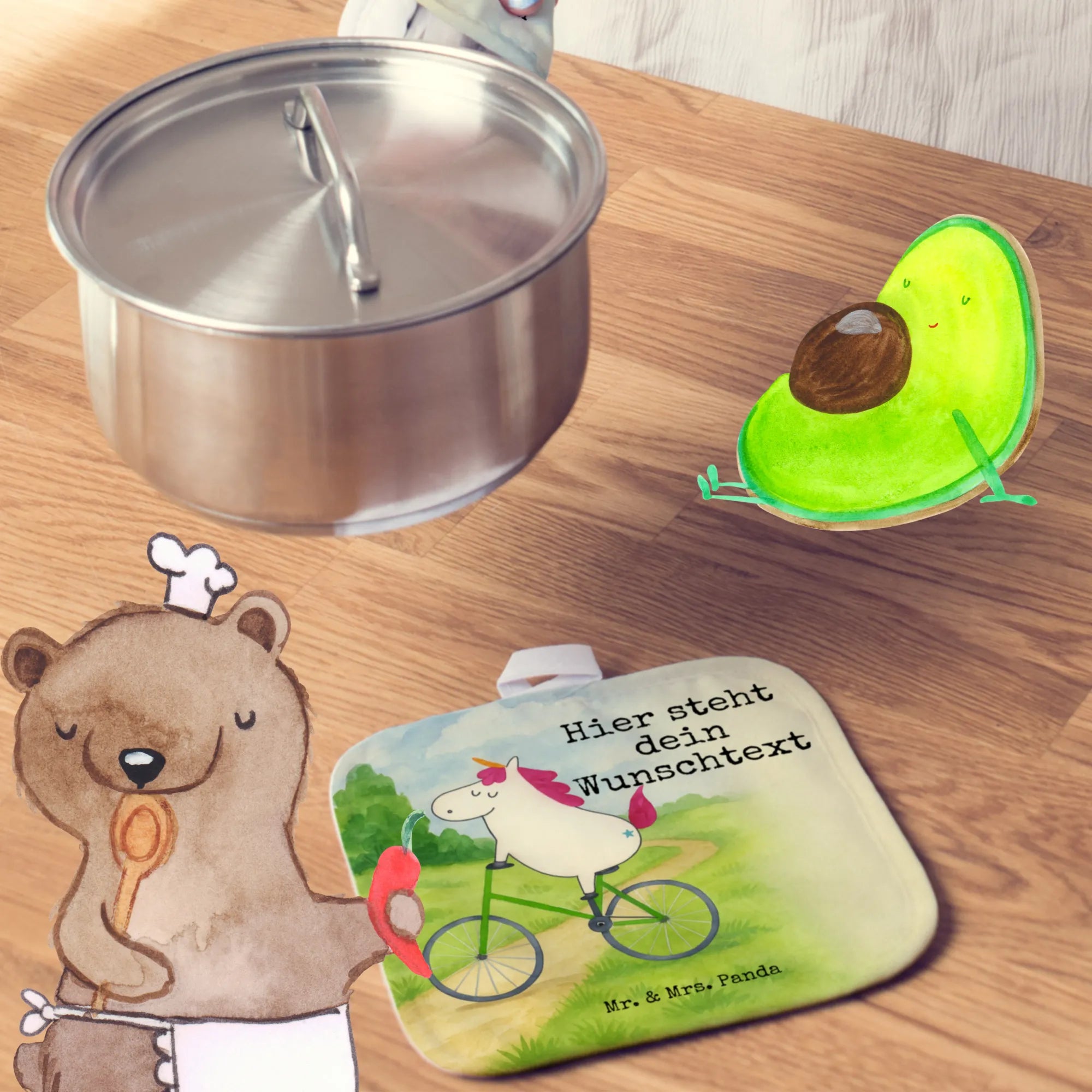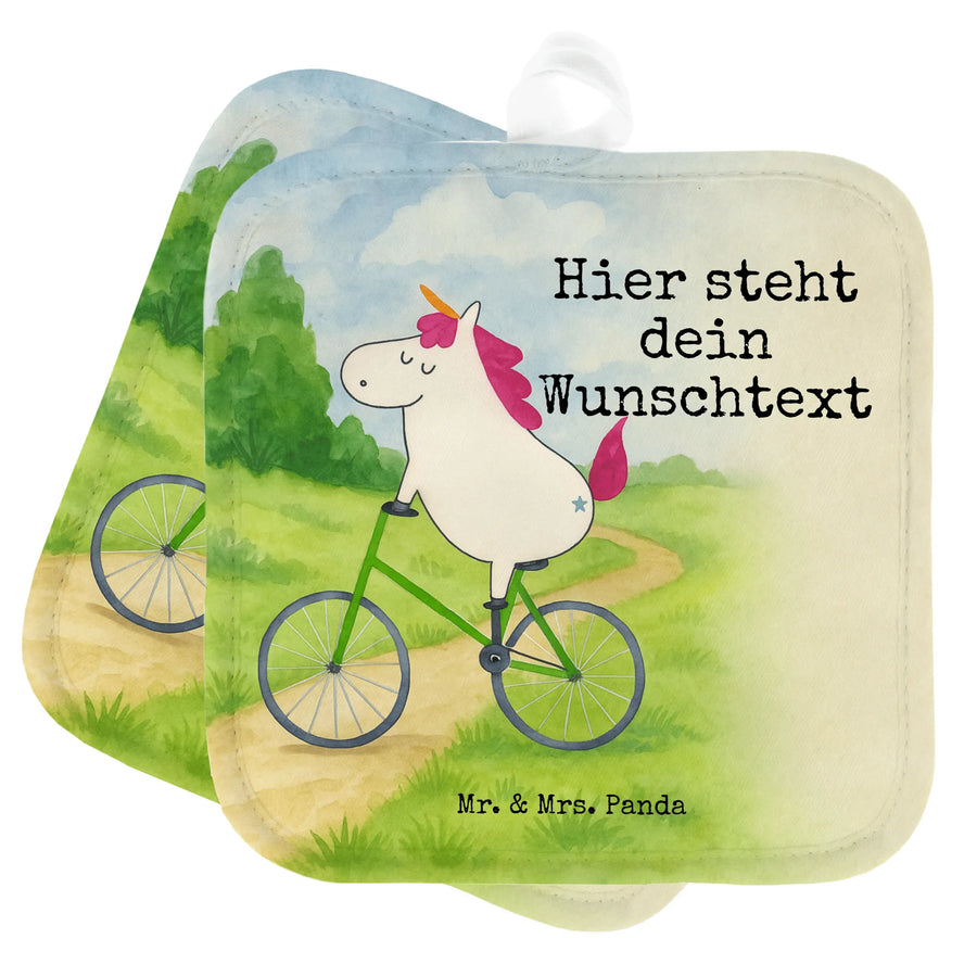 Personalisierte Topflappen Einhorn Radfahrer Design – Mr. & Mrs. Panda