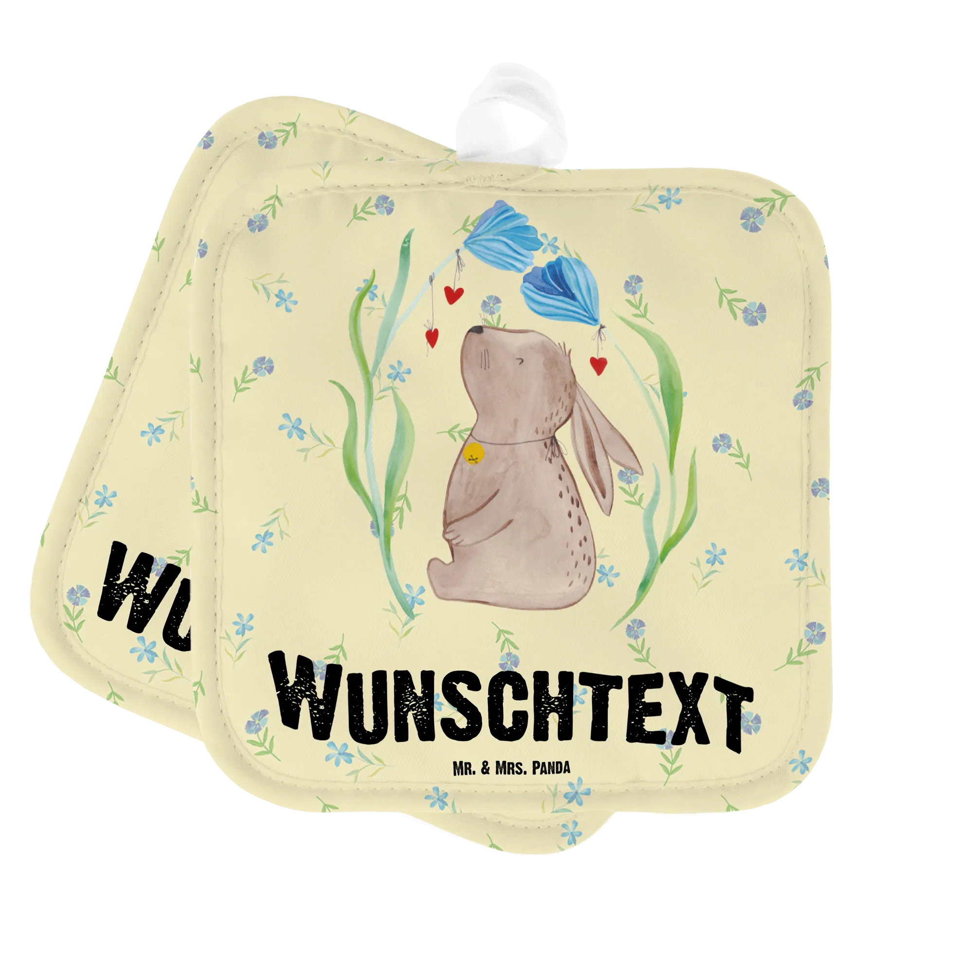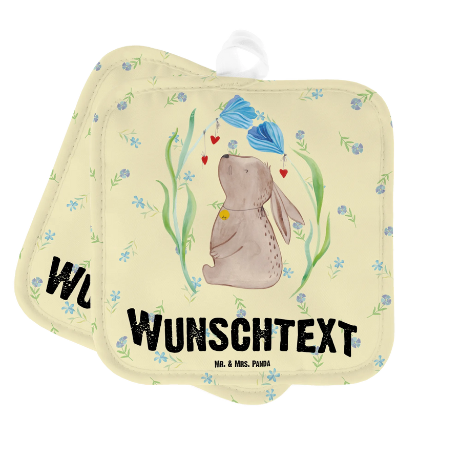 Mit einem süßen kleinen Hasen, der zwischen bunten Blumen sitzt, und einem Glöckchen um den Hals, erweckt unser Topflappen die Frühlingsstimmung direkt in deiner Küche. Als personalisiertbare Topflappen kannst du sie mit deinem Wunschnamen oder individuellen Spruch gestalten - das macht sie zu einem ganz besonderen Geschenk! Die liebevollen Motive und Sprüche von Mr. & Mrs. Panda laden dich ein, an deiner Kreativität festzuhalten und Freude zu teilen.