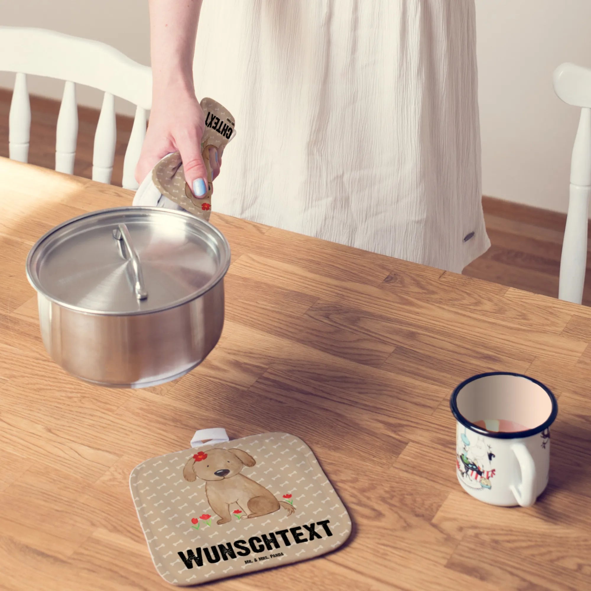 Du liebst deinen Hund und möchtest deine Leidenschaft für ihn auch in der Küche zeigen? Dann sind die personalisierten Topflappen mit dem süßen Hundemotiv "Hundedame" aus der Hunde Kollektion von Mr. & Mrs. Panda genau das richtige Geschenk für dich oder einen lieben Freund, der ebenfalls ein großer Hundeliebhaber ist!