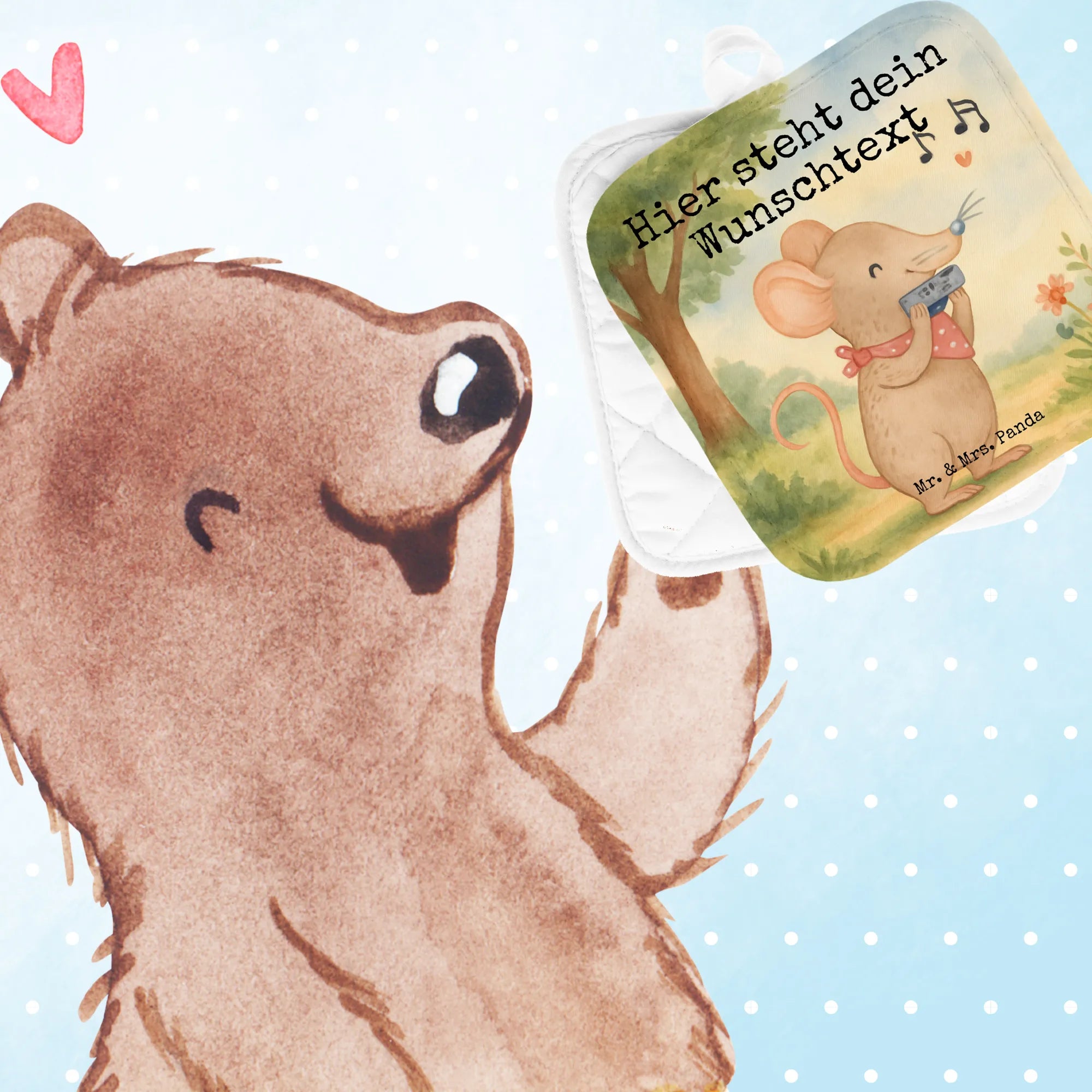 Personalisierte Topflappen Maus Mundharmonika Design