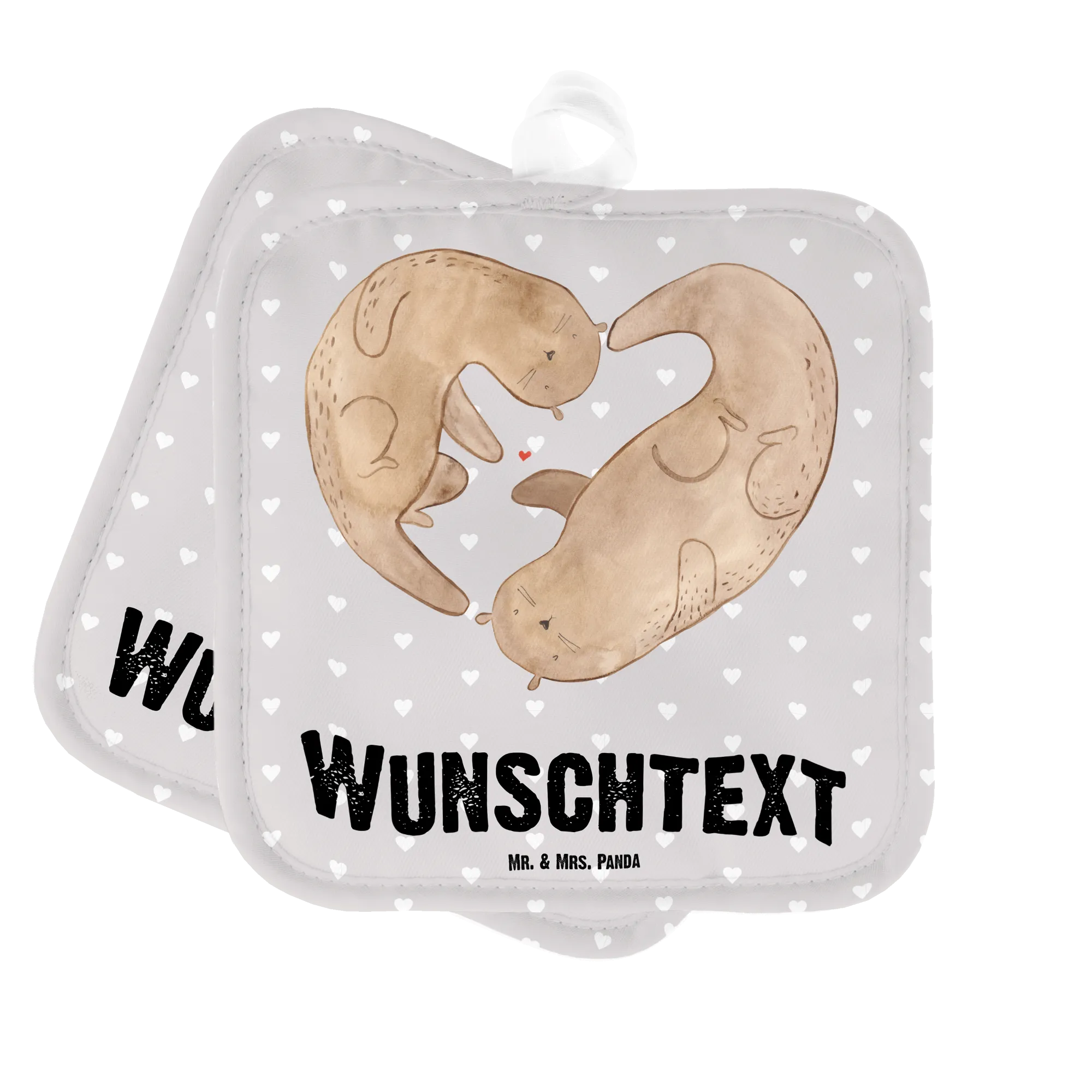 Zwei personalisierte Topflappen „Otter Valentine“ aus der Liebe-Kollektion von Mr. & Mrs. Panda