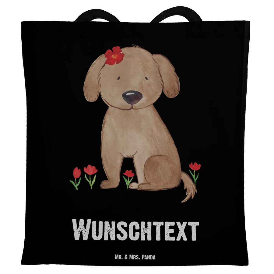 Die personalisierte Tragetasche "Hund Hundedame" aus der zauberhaften Hunde Kollektion von Mr. & Mrs. Panda ist das perfekte Geschenk für Hundeliebhaber und Hundebesitzer. Diese hochwertige Tragetasche wird aus 100% Baumwolle gefertigt und ist mit einer niedlichen Hundedame mit einer Blume auf dem Kopf bedruckt.