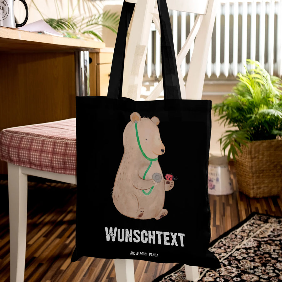 Personalisierte Tragetasche Bär Arzt - Schwarz