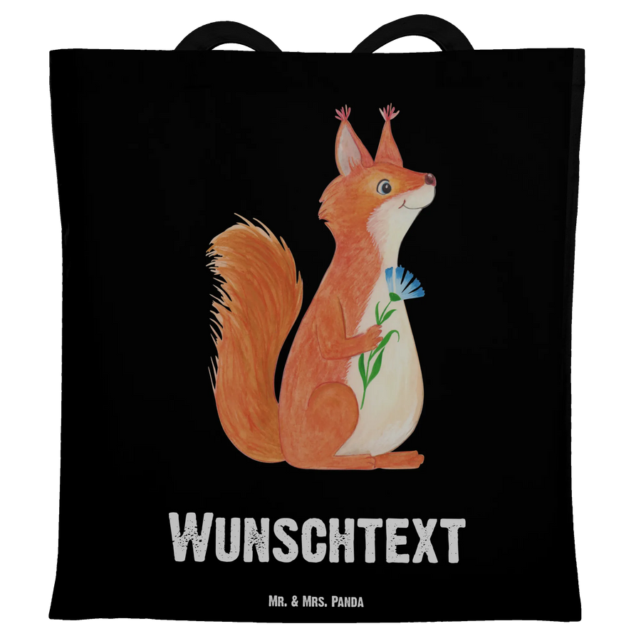 Personalisierte Tragetasche Eichhörnchen Blume - Schwarz