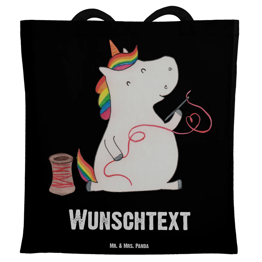 Personalisierte Tragetasche Einhorn Näherin - Schwarz