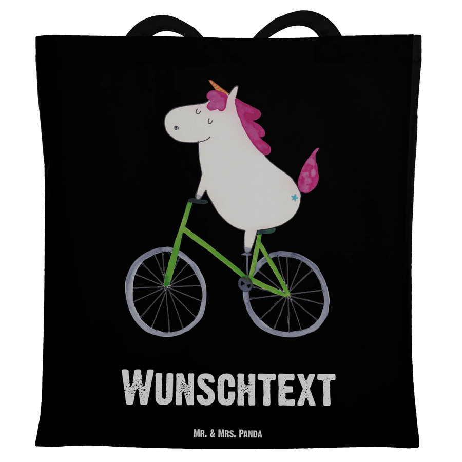 Personalisierte Tragetasche Einhorn Radfahrer - Schwarz
