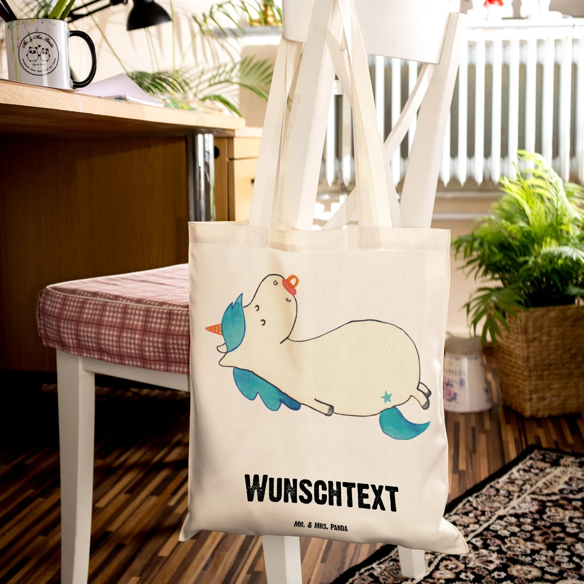 Mit einem einzigartigen Einhorn-Motiv, das liebevoll von Mrs. Panda handgezeichnet wurde, bringt die Tasche Freude und Magie in den Alltag. Dein Wunschname oder Wunschtext kann ganz einfach hinzugefügt werden, um die Tasche noch persönlicher zu gestalten. Ob als hübscher Baby-Beutel für den Kindergarten oder als schicke Einkaufstasche – sie ist immer ein Highlight.