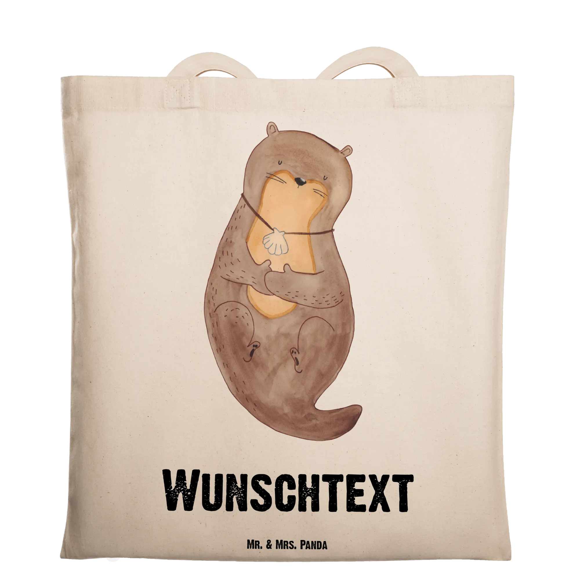 Personalisierte Tragetasche Otter mit Muschelmedaillon - Transparent