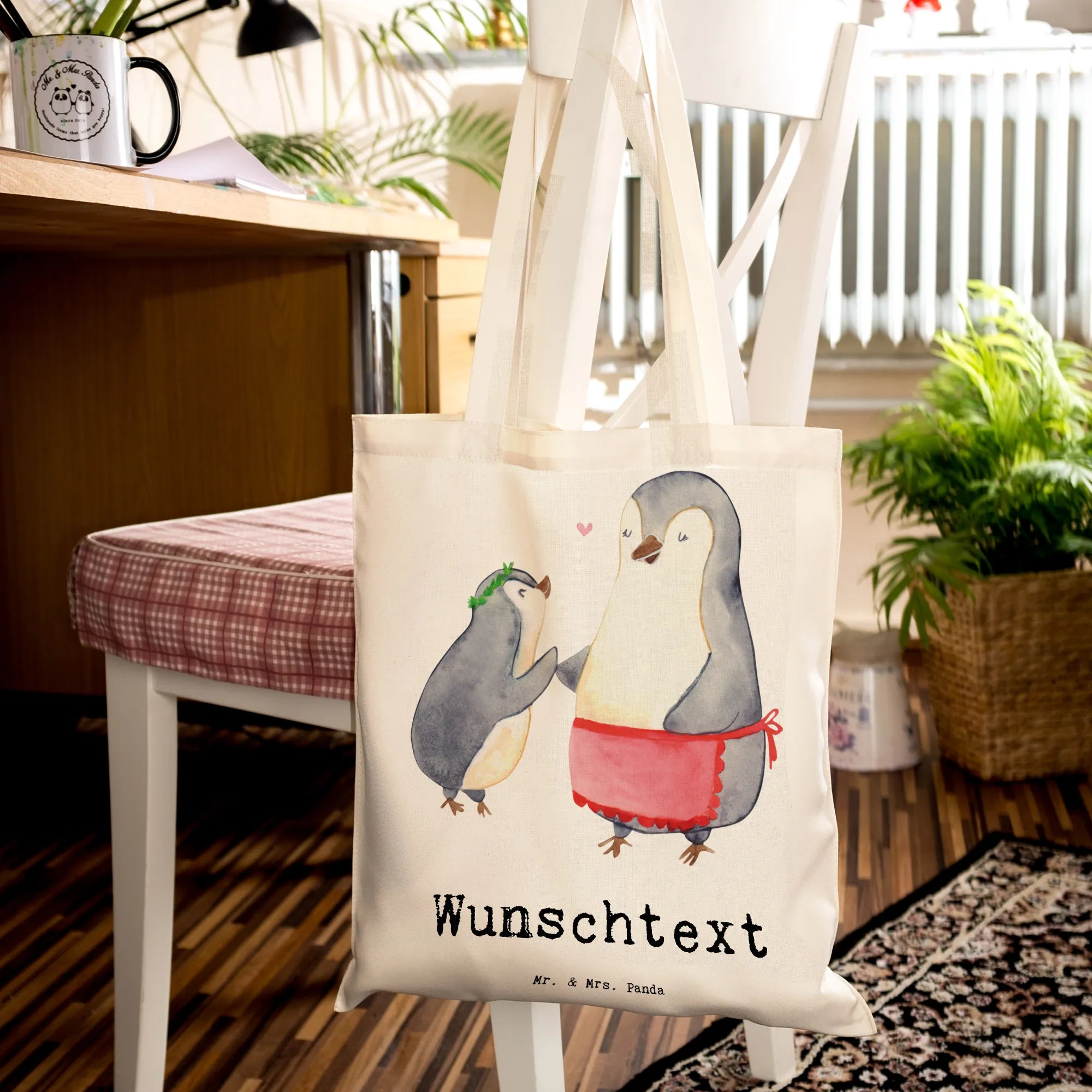 Die personalisierte Tragetasche "Pinguin Beste Mami der Welt" von Mr. & Mrs. Panda ist ein absolut einzigartiges und liebevolles Geschenk für alle Mütter. Mit einem süßen Pinguin-Motiv, das eine Mutter mit ihrem kleinen Pinguin-Kind zeigt, ist diese Tasche perfekt für Mutti, die immer für ihre Familie da ist.