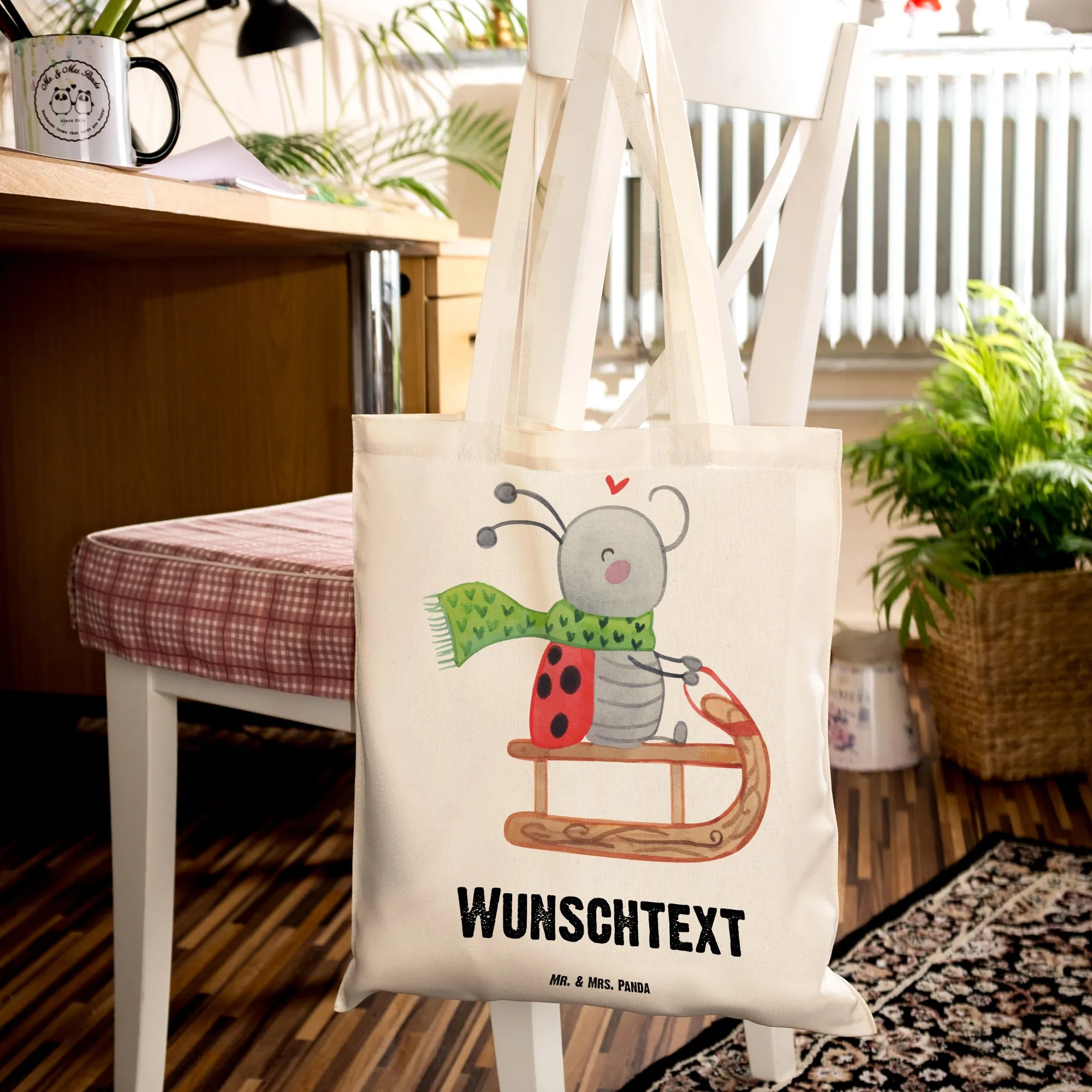 Mach die kalte Jahreszeit für deine Lieben noch schöner mit dieser liebevoll gestalteten und personalisierbaren Tragetasche. Außerdem ist das Motiv lebendig und lädt zum Träumen ein: Das kleine Herz über dem Marienkäfer strahlt Freude und Glück aus.