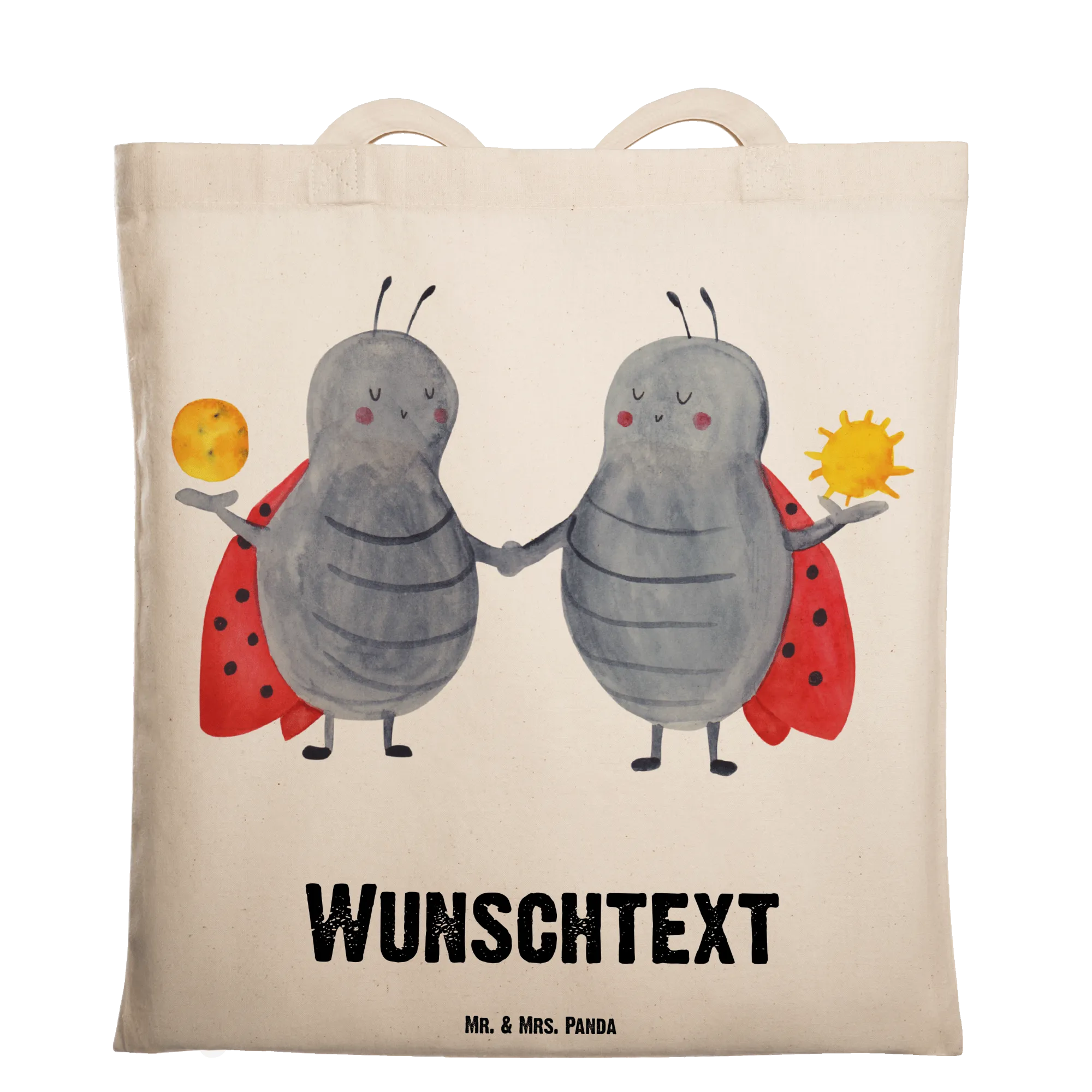 Das bezaubernde Design zeigt nicht nur zwei süße Marienkäfer, die die Zwillinge symbolisieren, sondern wird auch individuell mit deinem Wunschnamen oder Wunschtext bedruckt. So wird jede Tasche zu einem einzigartigen Unikat! Der lustige Slogan "Aufgeschlossen und begeistert wie ein Zwilling." ergänzt perfekt das Design und macht die Tasche zu einem tollen Geburtstagsgeschenk für Zwillinge oder als originelles Geschenk für Mütter, Tanten und Freunde mit Sternzeichen Zwilling.