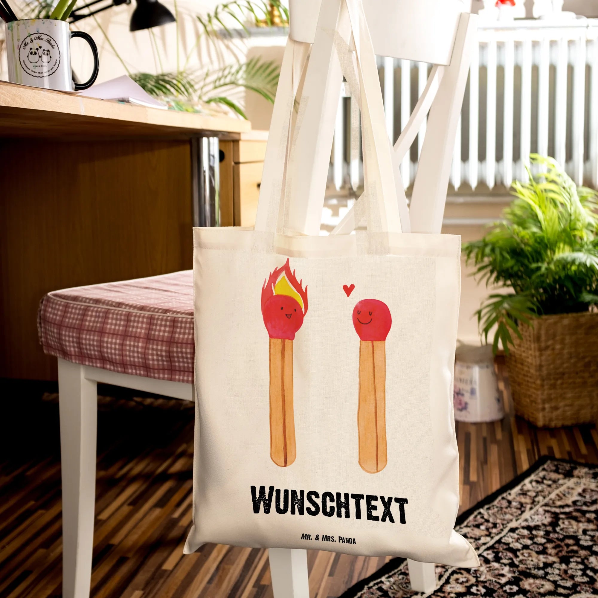 Bist du auf der Suche nach einem perfekten Geschenk für deinen Lieblingsmenschen? Dann ist unsere personalisierte Tragetasche mit dem bezaubernden Motiv der Streichhölzer aus der Liebe Kollektion genau das Richtige für dich! Diese Tasche ist nicht nur praktisch, sondern auch ein richtiges Liebesgeschenk, das Herzen höherschlagen lässt. Die Streichhölzer symbolisieren eine liebevolle Verbindung zwischen zwei Menschen. Das linke Streichholz brennt vor Freude, während das rechte, mit einem herzlichen Lächeln, die Liebe widerspiegelt, die zwischen euch besteht.