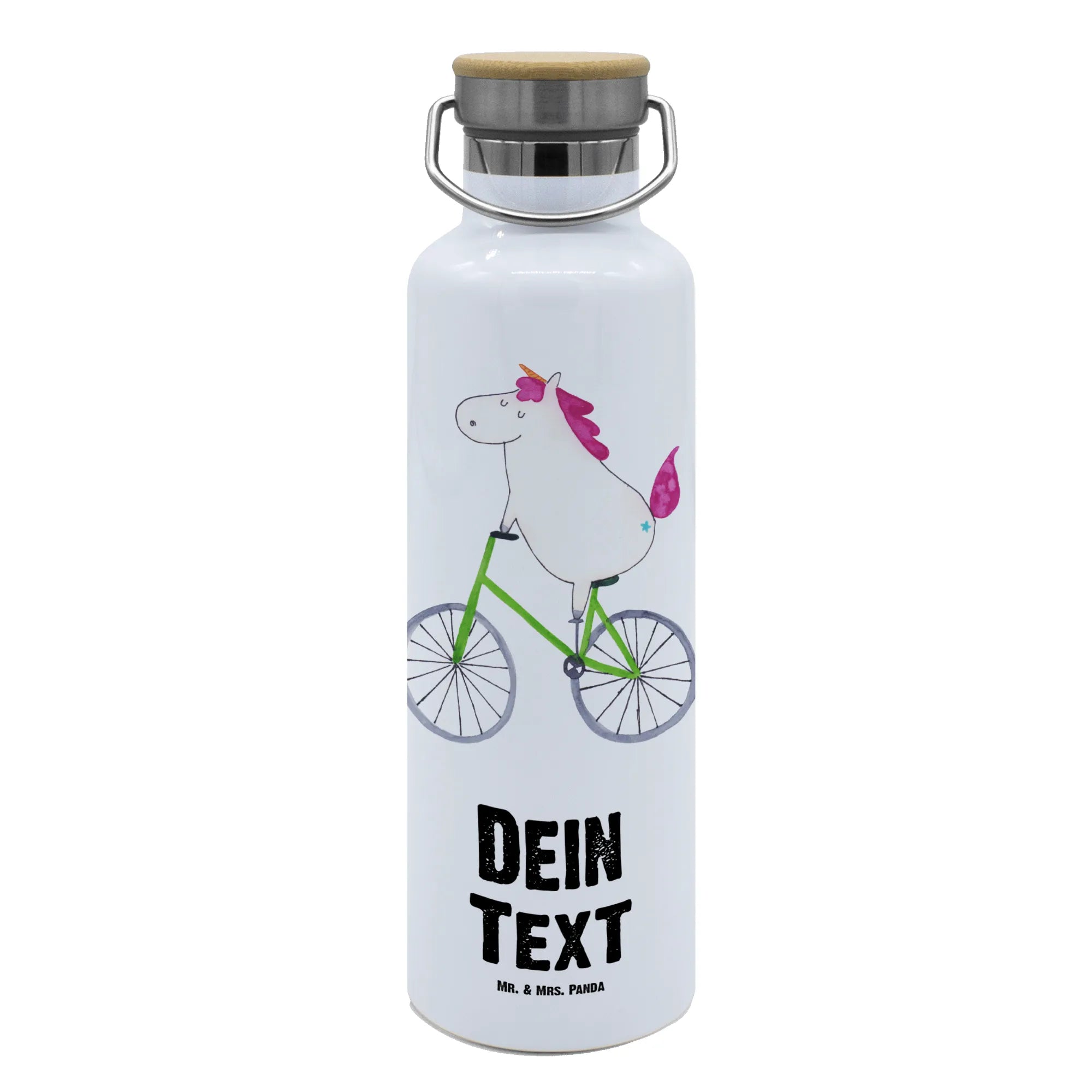 Personalisierte Trinkflasche Einhorn Radfahrer