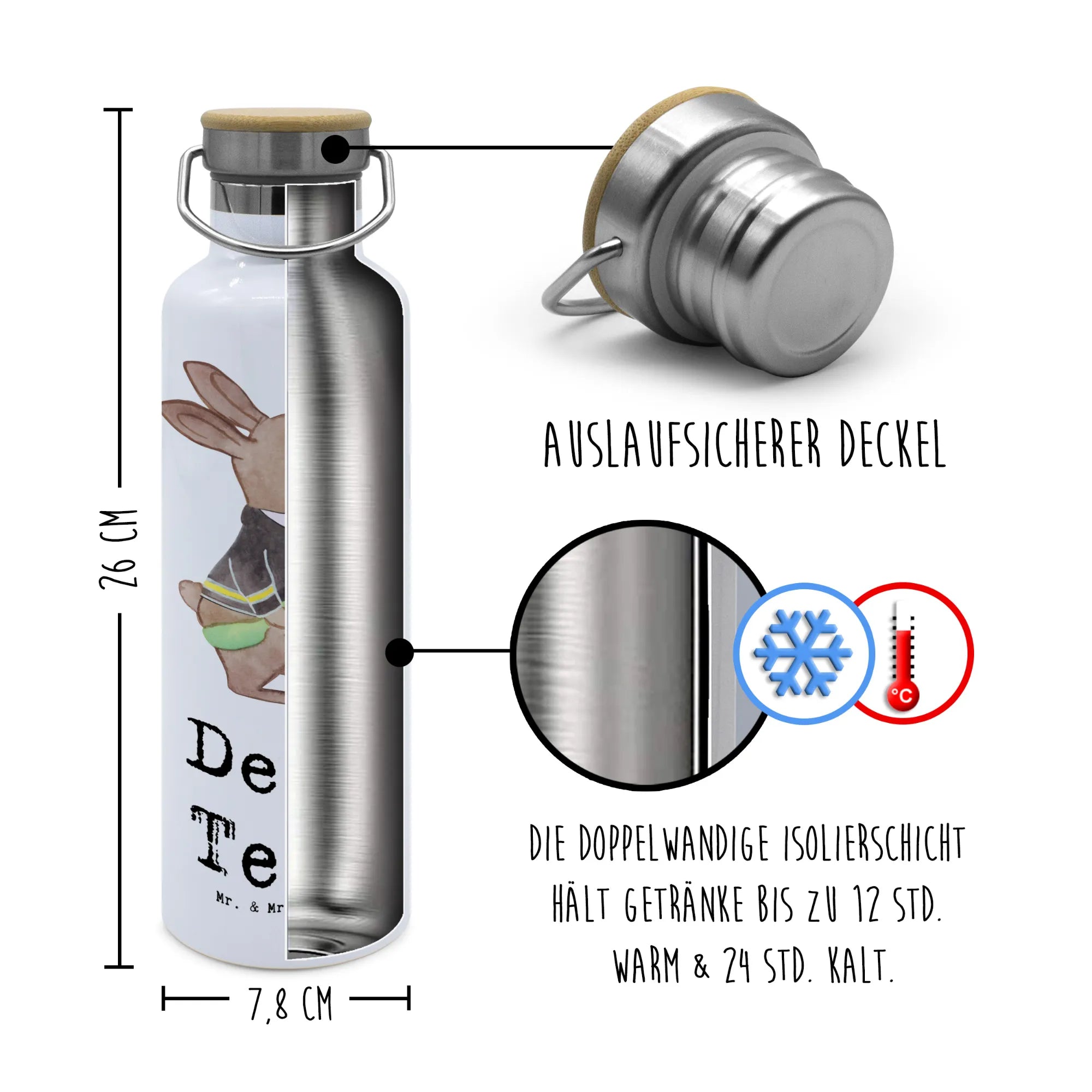 Mit der personalisierten Trinkflasche von Mr. & Mrs. Panda machst du nicht nur dein Lieblingsgetränk zum Highlight, sondern auch dein ganz persönliches Statement! Die Flasche lässt sich mit einem Wunschtext oder Namen versehen und ist dekoriert mit zauberhaften Sprüchen und Motiven. Sie misst 255 mm in der Höhe und hat einen Durchmesser von 78 mm, bei einem Gewicht von 385 g. Zudem fasst sie 750 ml und besteht aus doppelwandigem Edelstahl sowie hochwertigem Kunststoff, was für ideale Isolation sorgt. Ob im Büro, beim Sport oder auf Wanderungen – diese Flasche begleitet dich überall! Sie eignet sich für alle Getränke, auch für kohlensäurehaltige Varianten. Pflegehinweis: Die Flasche ist nicht spülmaschinenfest – eine sanfte Handwäsche wird empfohlen, damit du lange Freude daran hast. Wähl deine persönliche Botschaft und genieße deine Getränke noch mehr!