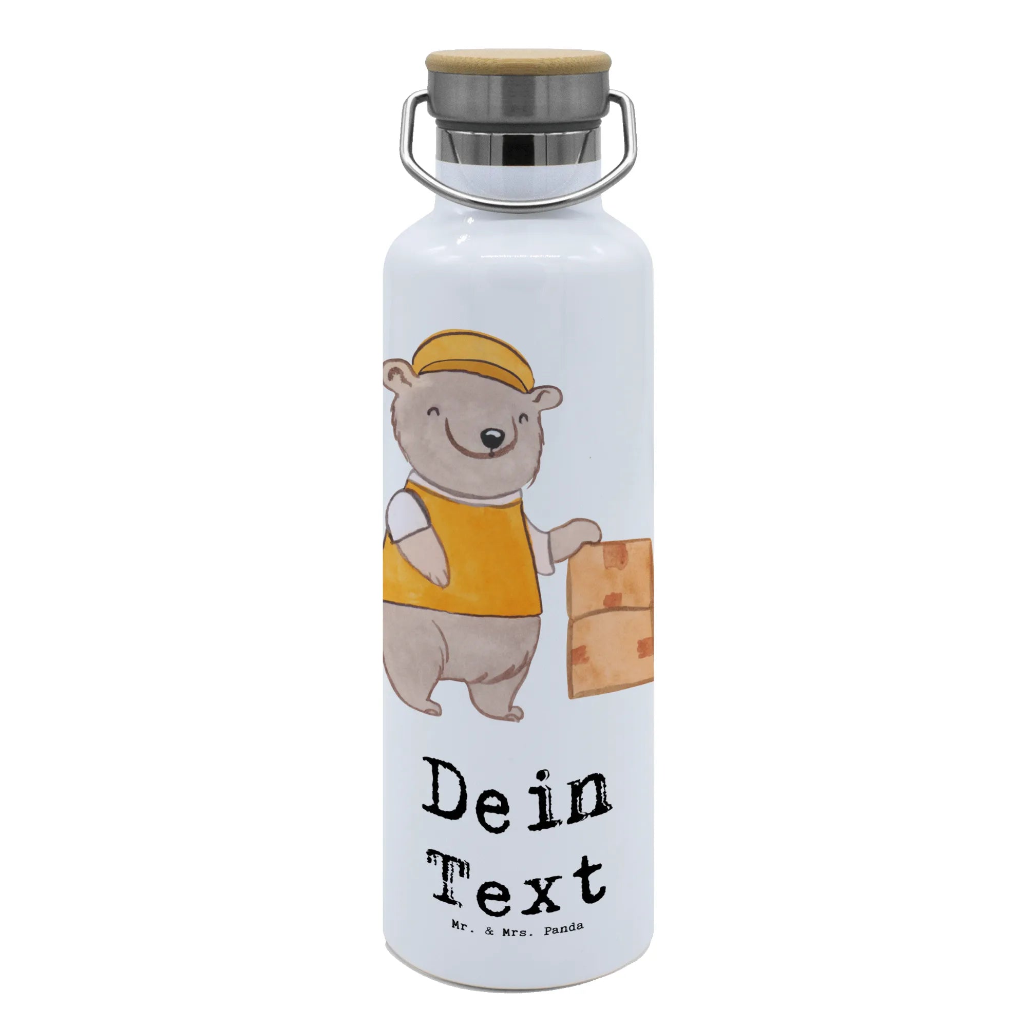 Die personalisierte Trinkflasche 'Lieferdienstmitarbeiter mit Herz' von Mr. & Mrs. Panda ist das ideale Geschenk für all jene, die im Lieferdienst tätig sind. Egal ob als Dankeschön für einen Kollegen, als Abschiedsgeschenk oder einfach nur so, diese Trinkflasche sorgt für strahlende Gesichter! Mit einem süßen Bären, der voller Elan mit Orangen im Helm die Kisten schleppt, ist diese Flasche nicht nur praktisch, sondern auch ein echter Hingucker.