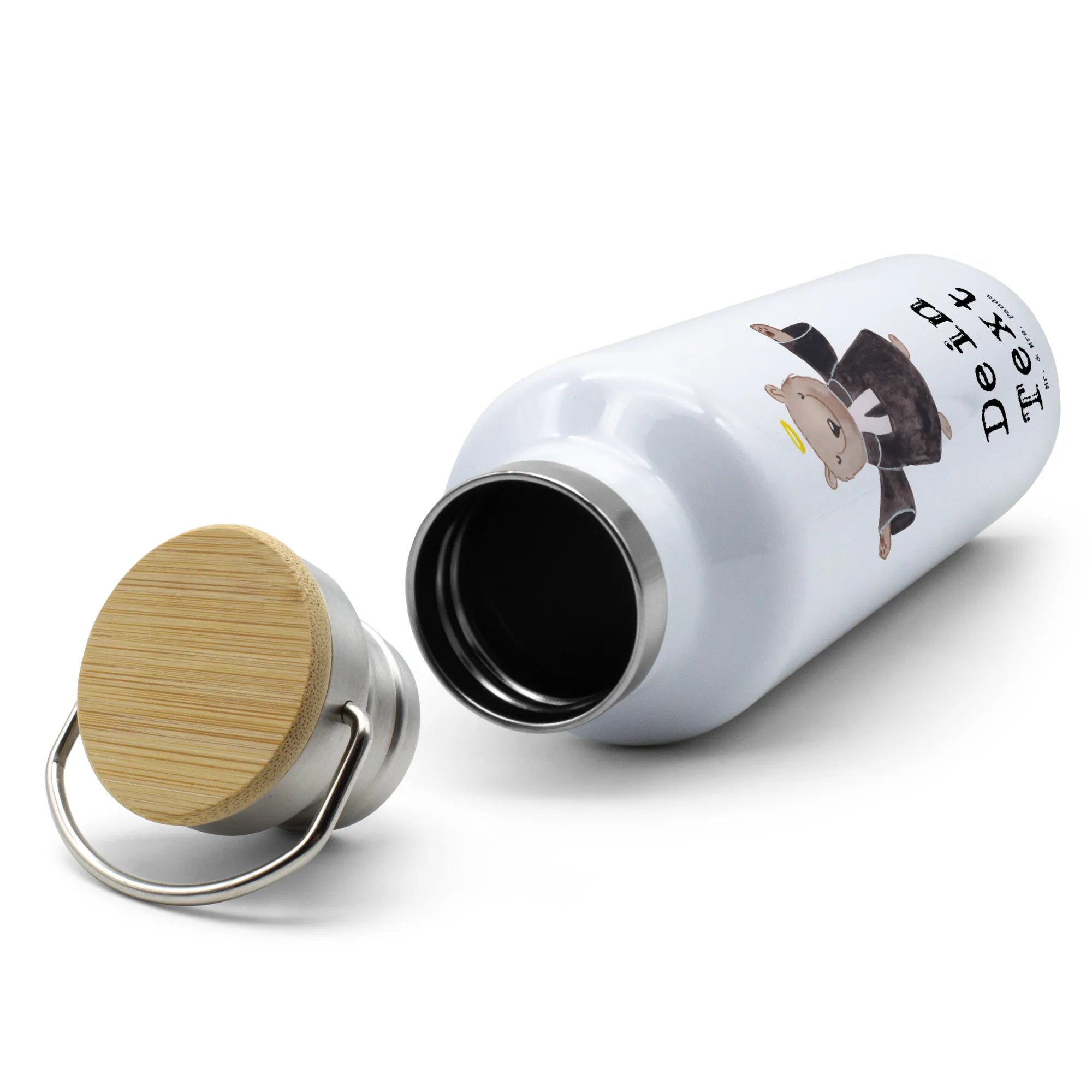 Die personalisierte Trinkflasche Pfarrer mit Herz von Mr. & Mrs. Panda ist das ideale Geschenk für jeden Pfarrer und jede Pfarrerin. Die doppelwandige Edelstahlflasche fasst 750 ml und ist perfekt geeignet für heiße oder kalte Getränke sowie für kohlensäurehaltige Erfrischungen.