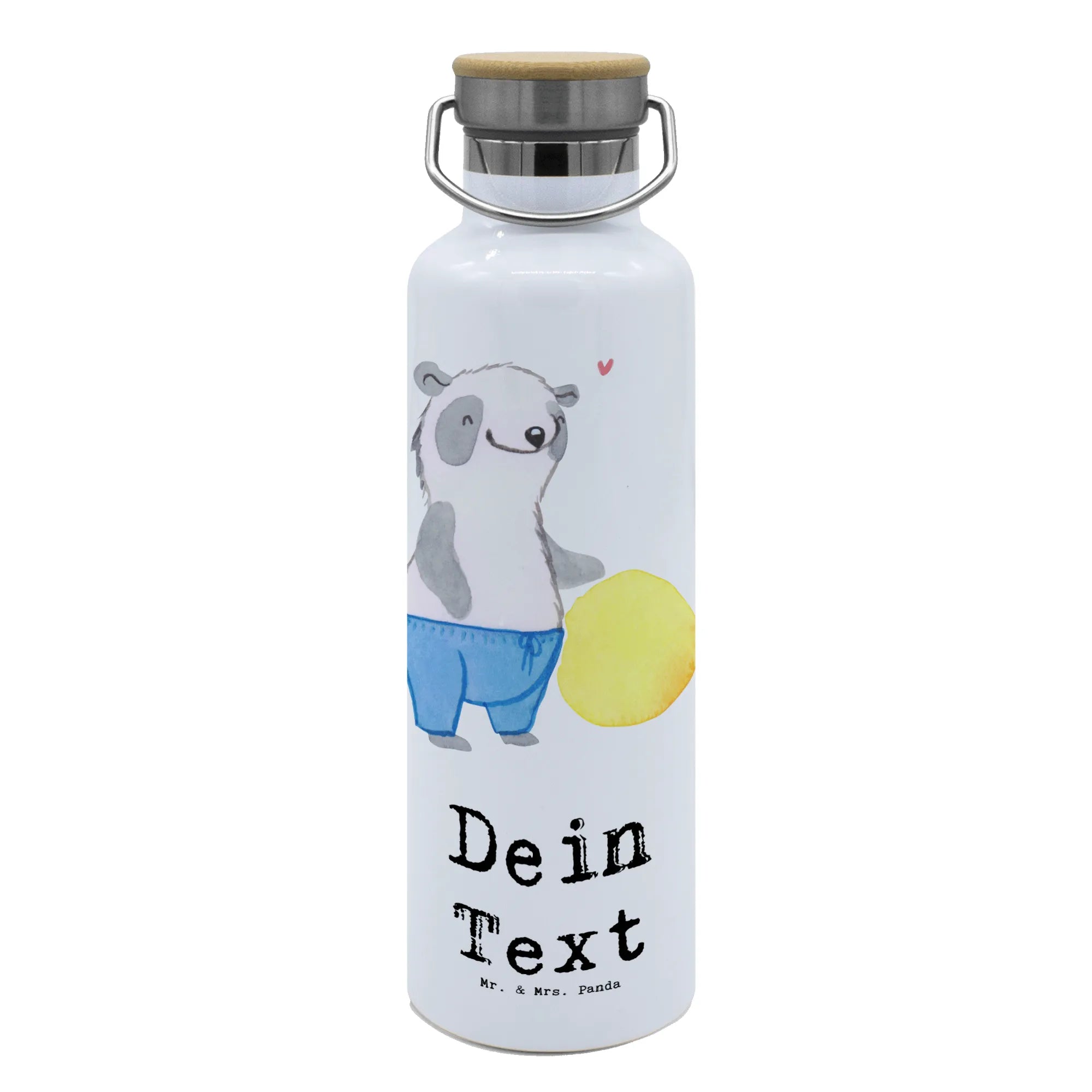 Die personalisierte Trinkflasche "Physiotherapeut mit Herz" von Mr. & Mrs. Panda ist das perfekte Geschenk für Physiotherapeuten und Physiotherapeutinnen! Mit ihrem süßen Design, das einen niedlichen Panda zeigt, der einen Gymnastikball hält, und dem Spruch "Du bist nur ein halber Mensch, wenn du kein Physiotherapeut bist." bringt diese Flasche ein Lächeln in jeden Arbeitstag.