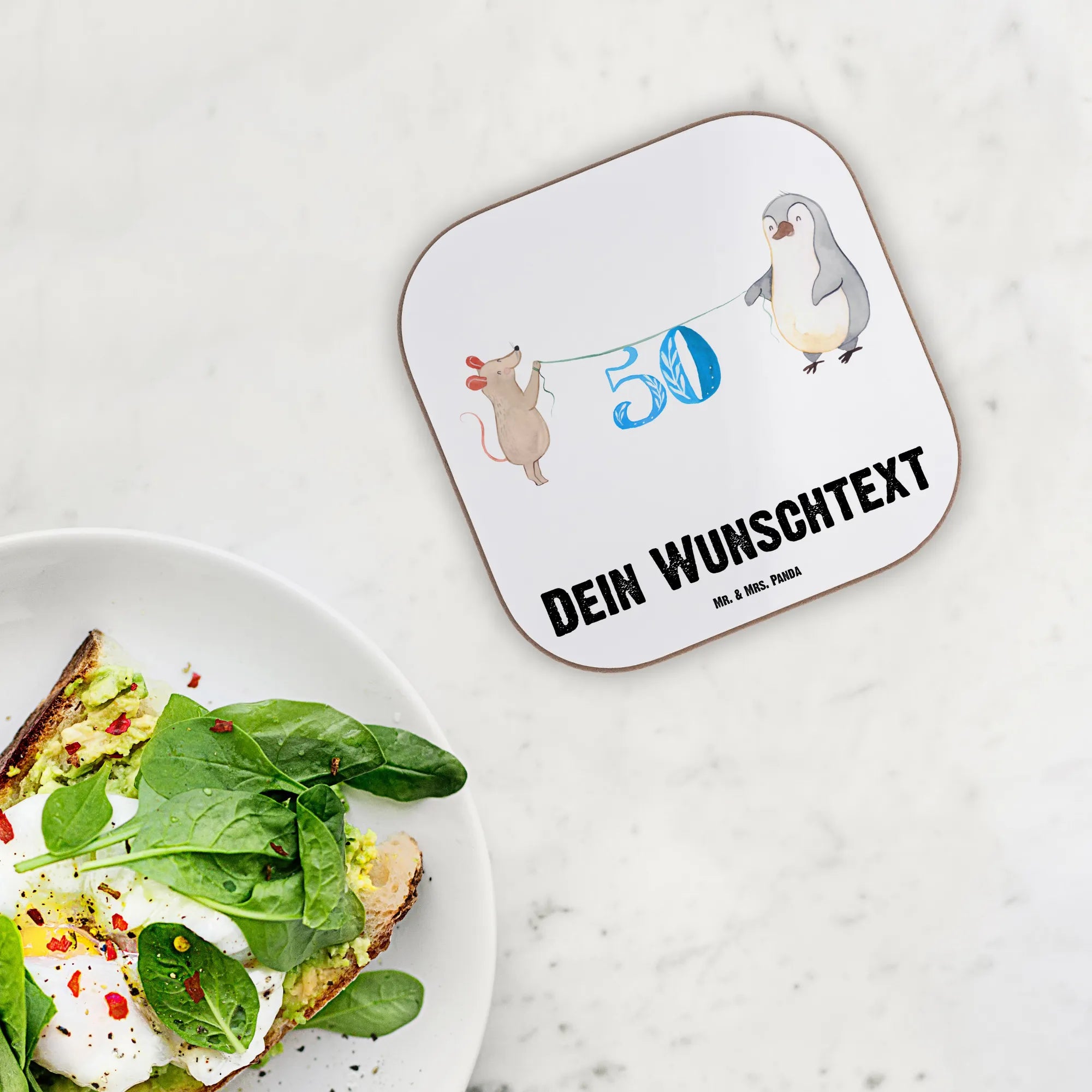 Personalisierte Untersetzer 50. Geburtstag Maus Pinguin