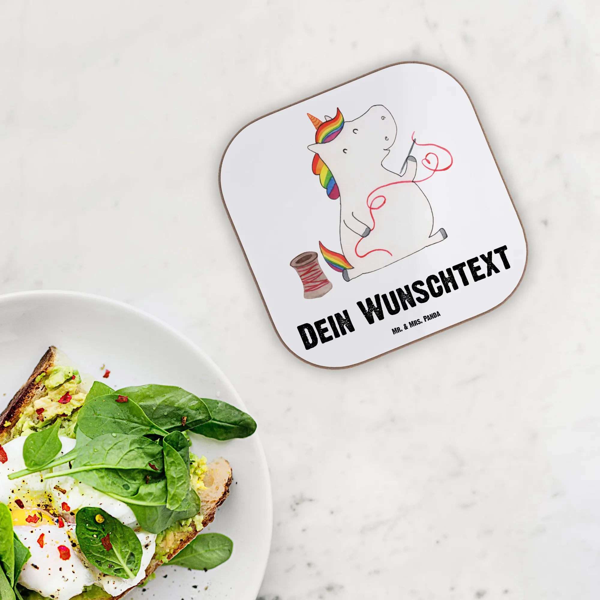 Ein personalisierter Untersetzer von Mr. & Mrs. Panda – das perfekte Geschenk für jede kreative Seele und Nähbegeisterte! Er wird zu einem Teil des kreativen Schaffens und zaubert jeden Tag ein Lächeln ins Gesicht. Bestelle jetzt und bringe ein bisschen Einhorn-Magie in dein Zuhause oder das Herz einer lieben Freundin!