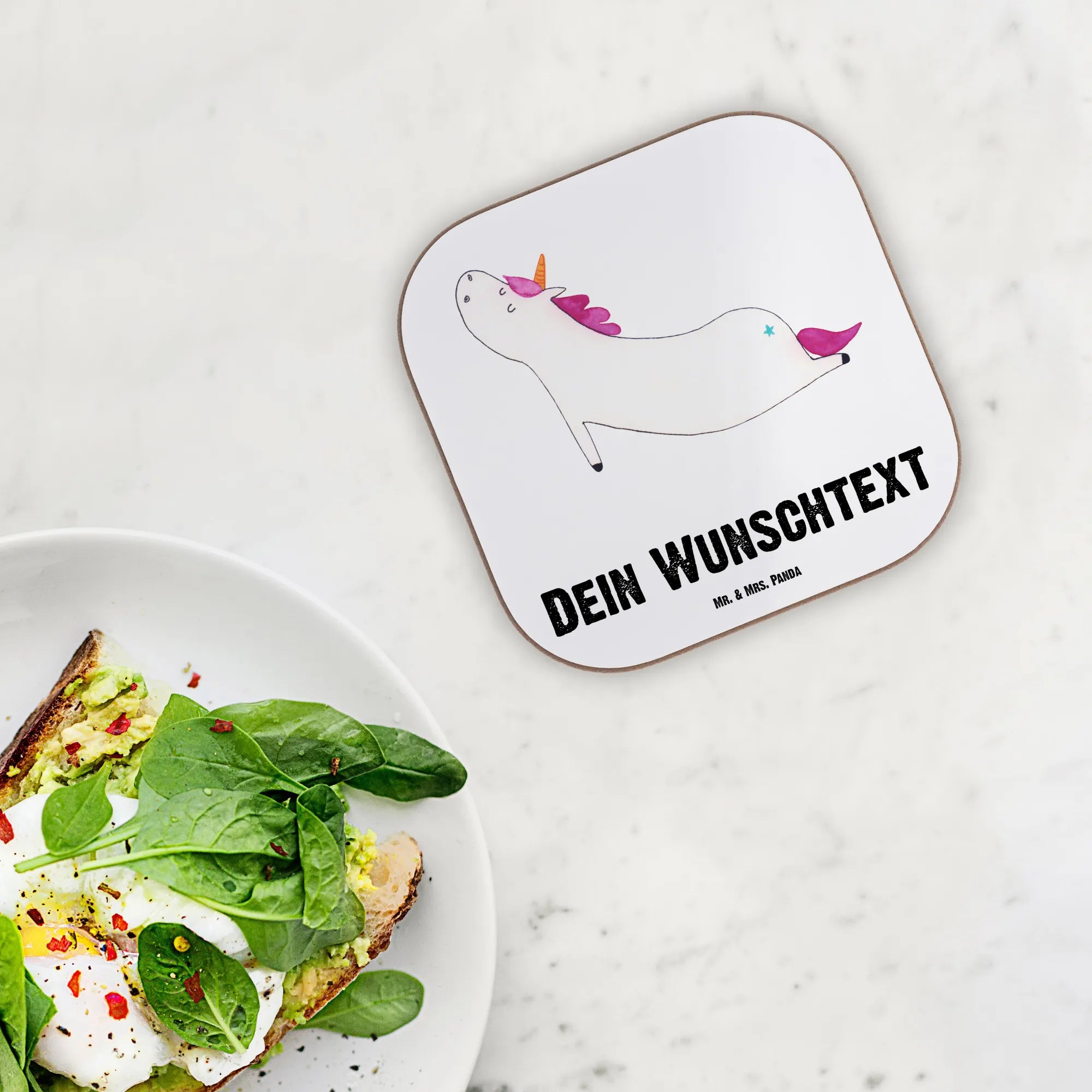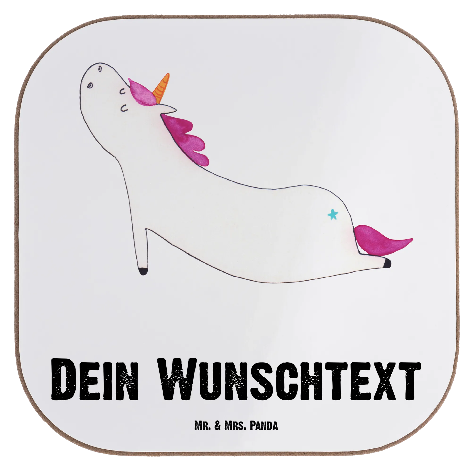 Du bist auf der Suche nach dem perfekten Geschenk für die yoga-begeisterte Freundin oder den besten Yogalehrer? Dann haben wir genau das Richtige für dich! Der personalisierte Untersetzer "Einhorn Yoga" aus der zauberhaften Einhorn-Kollektion von Mr. & Mrs. Panda verbindet Funktionalität mit einem Hauch Magie. Mit dem süßen Einhorn-Motiv, das beim Anblick schon für gute Laune sorgt, wird jeder Tee- oder Kaffeetisch zum Hingucker.