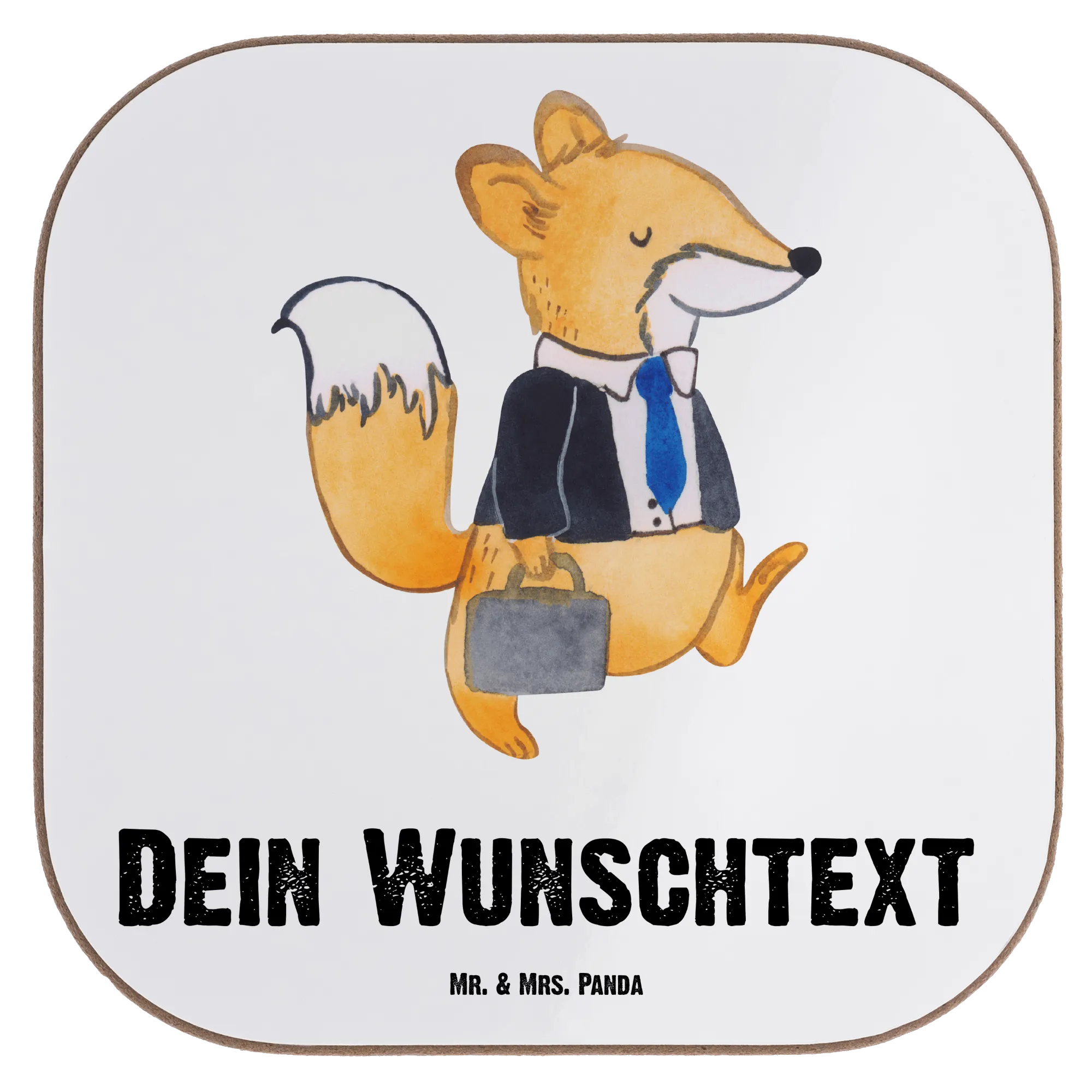 Das bezaubernde Motiv eines Fuchses im Anzug, der stolz mit einem Aktenkoffer herumläuft, wird jeden Büroalltag auflockern und gleichzeitig den persönlichen Touch deiner Geschenkidee unterstreichen. Der Untersetzer misst 100 mm x 100 mm und besteht aus hochwertigem Hartfaser-Material, das nicht nur edel aussieht, sondern auch äußerst langlebig und wasserabweisend ist. So schützt er deinen Tisch vor unschönen Kratzern und lästigen Trinkabdrücken.