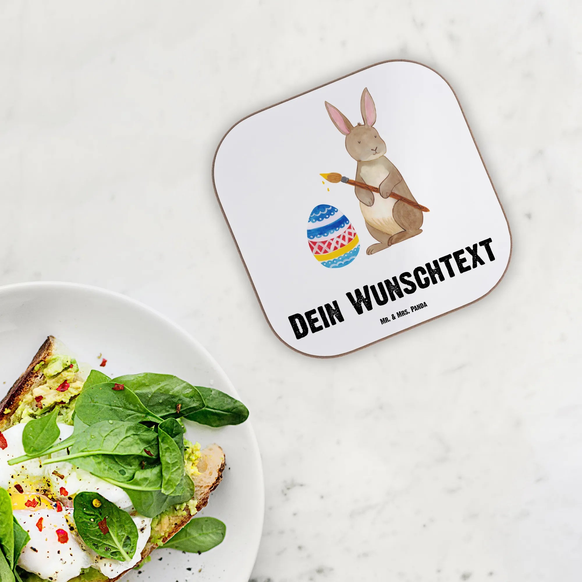 Entdecke die Magie der Osterzeit mit unserem personalisierten Untersetzer "Hase Eiermalen" aus der exklusiven Ostern-Kollektion von Mr. & Mrs. Panda. Dieser quadratische Untersetzer begeistert nicht nur mit seinem liebevollen Design, sondern auch mit der Möglichkeit, ihn mit deinem eigenen Wunschtext zu personalisieren.