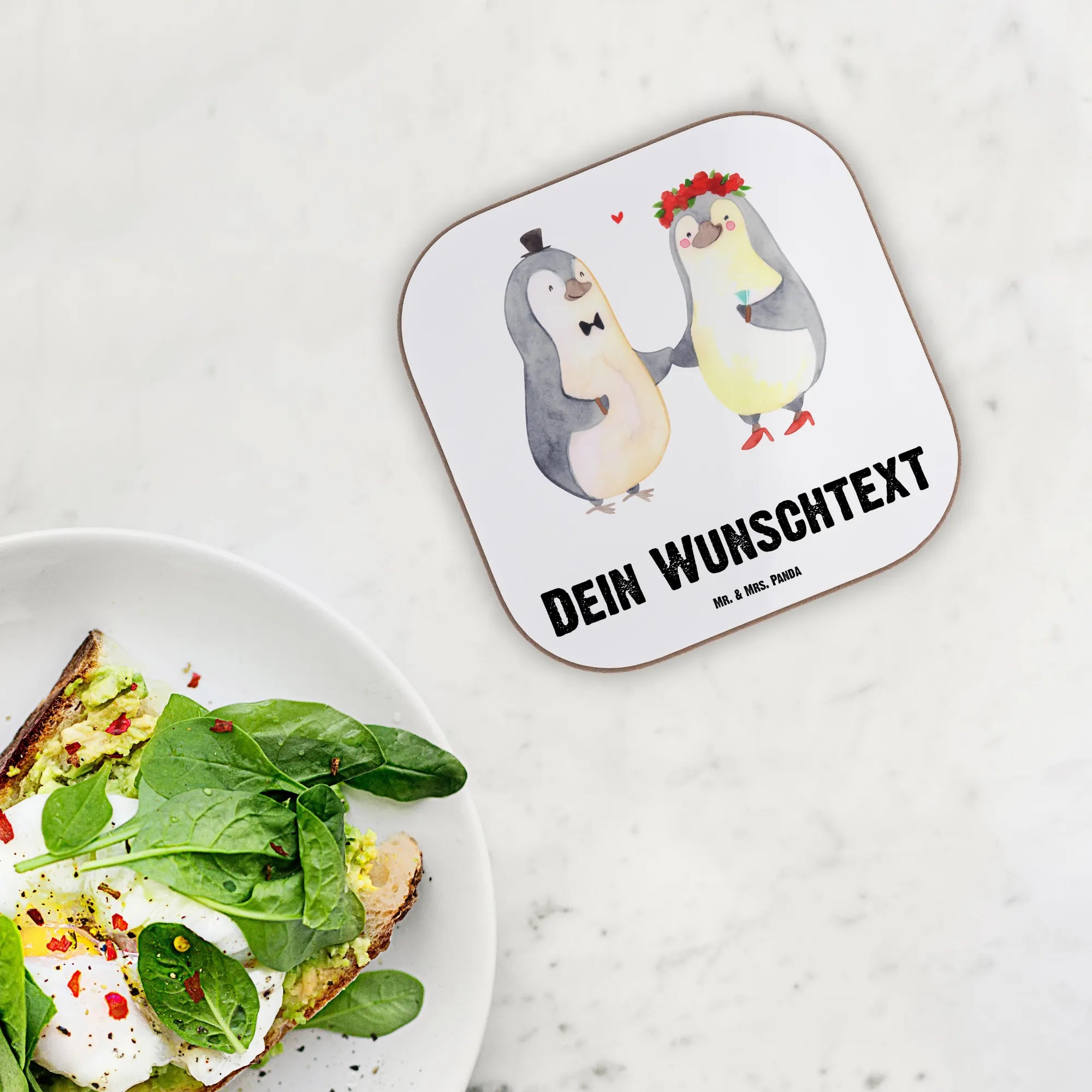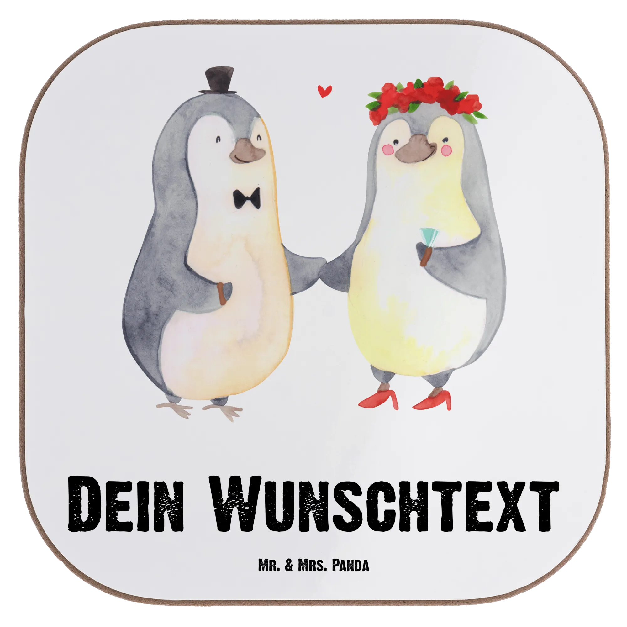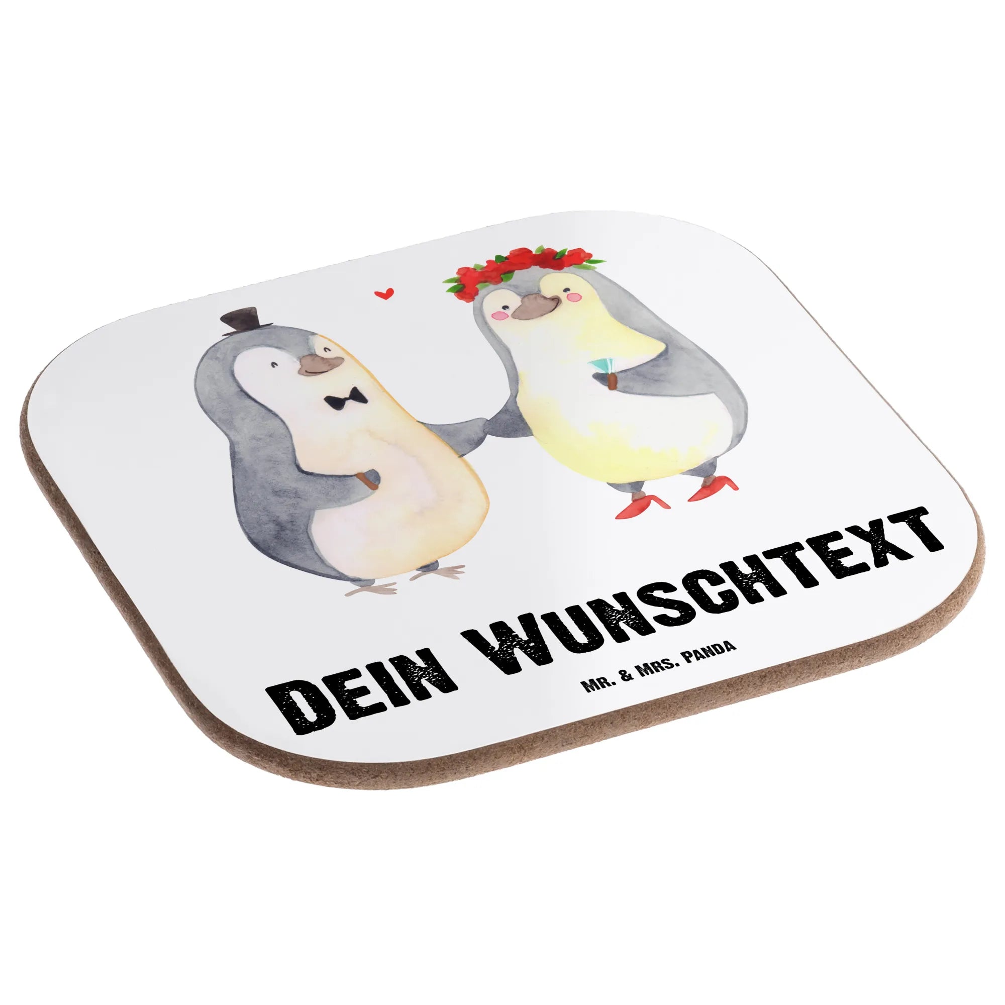 Du suchst ein ganz besonderes Hochzeitsgeschenk? Dann sind die personalisierten Untersetzer mit dem süßen Hochzeitspaar Pinguin von Mr. & Mrs. Panda genau das Richtige für dich!