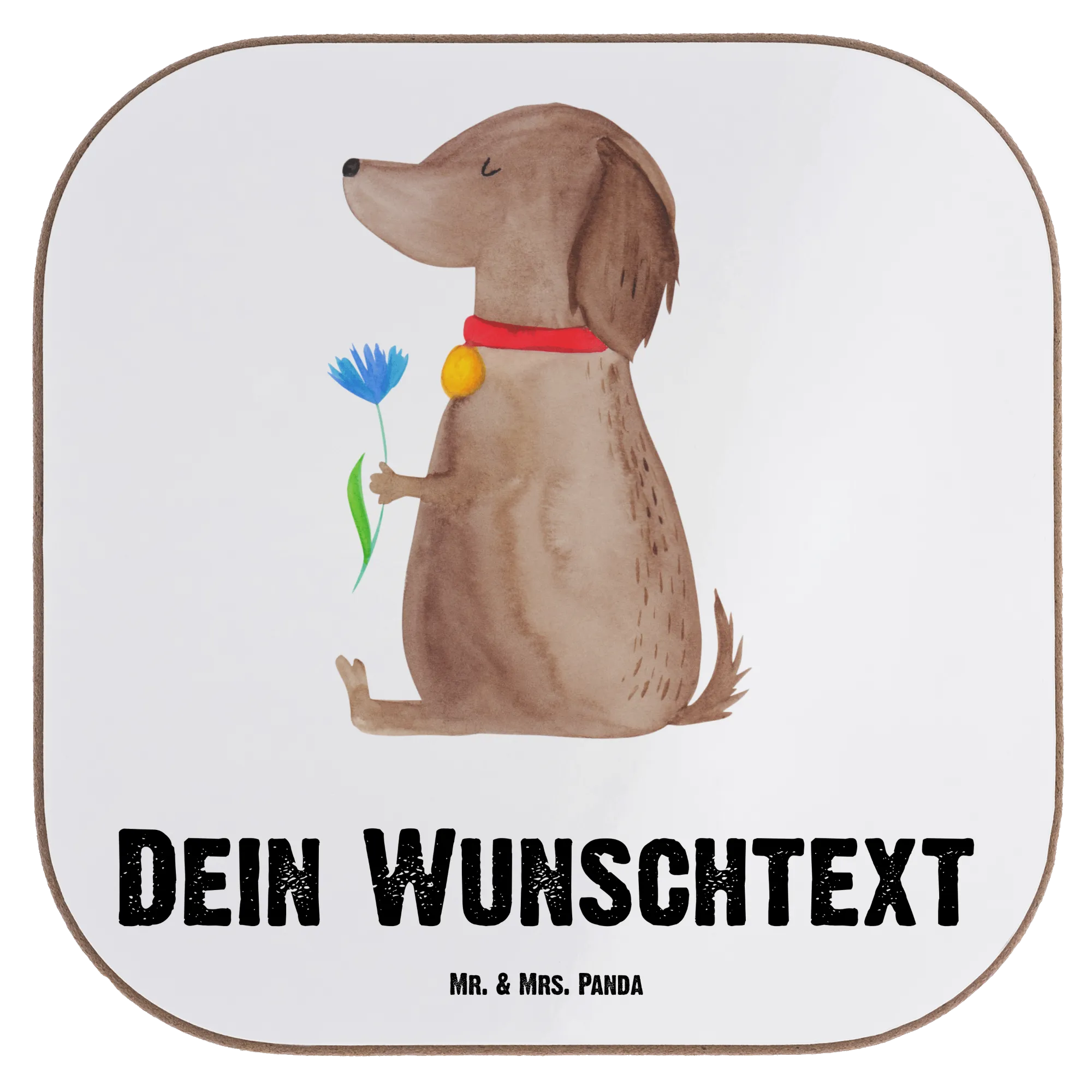 Ein wunderschöner personalisierter quadratischer Untersetzer von Mr. & Mrs. Panda ist das perfekte Geschenk für alle Hundeliebhaber und Hundebesitzer! Mit dem süßen Motiv "Hund Blume" zauberst du jedem ein Lächeln ins Gesicht. Egal ob für den eigenen Gebrauch oder als liebevolles Präsent – dieser Untersetzer ist nicht nur praktisch, sondern auch ein echter Blickfang. Mit einer Größe von 100 mm x 100 mm bietet er genug Platz für Gläser oder Tassen und schützt deinen Tisch gleichzeitig vor ungewollten Abdrücken und Kratzern.