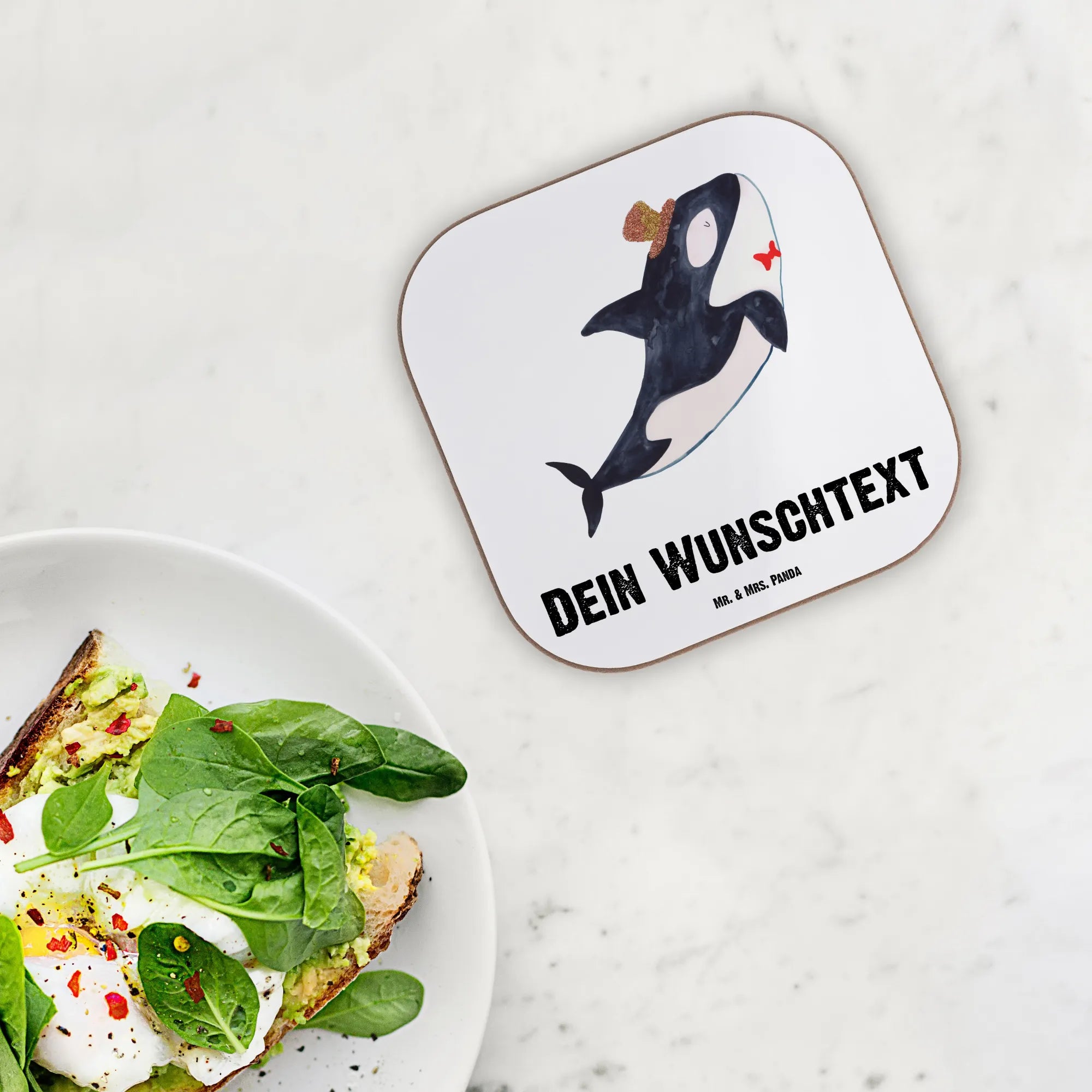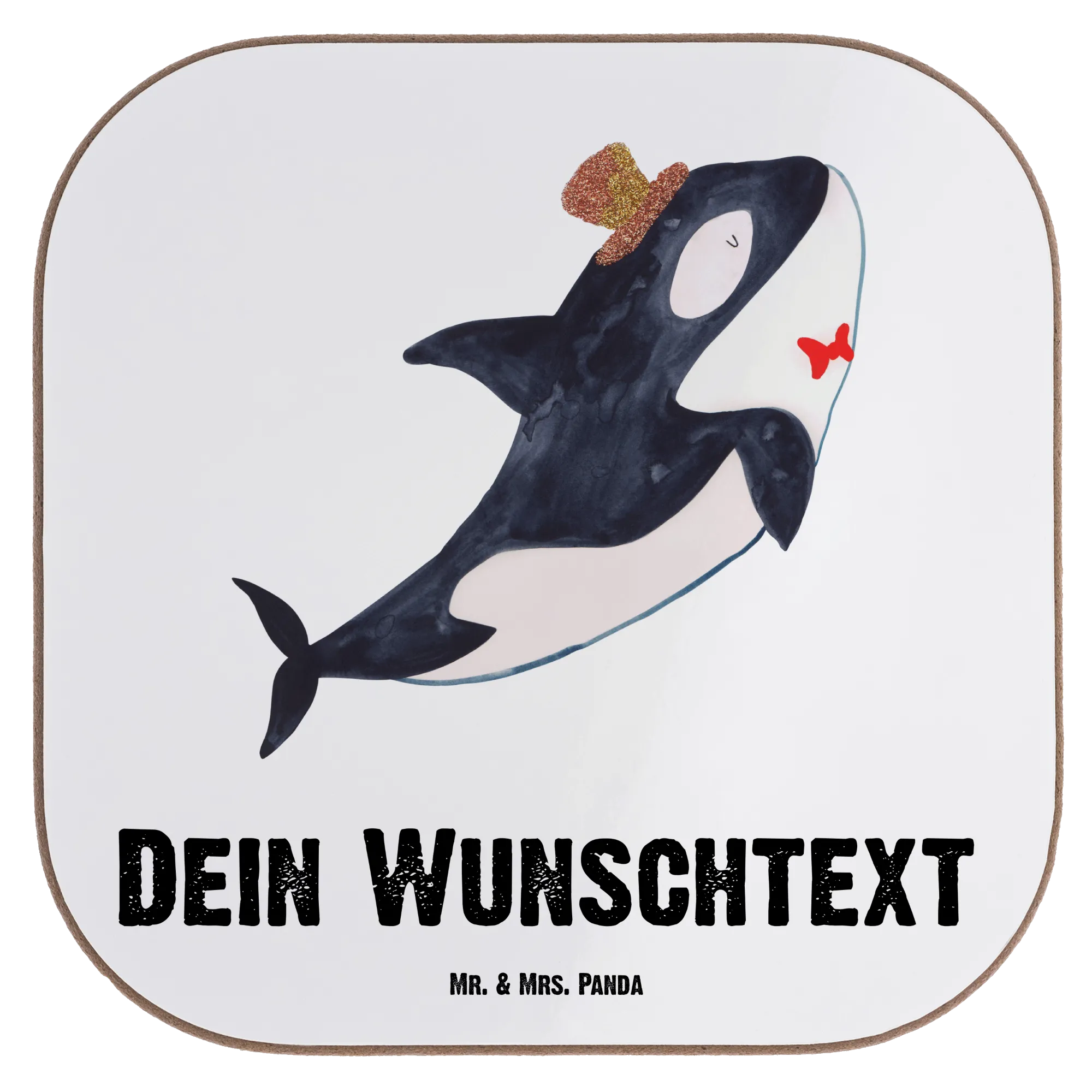 Entdecke die perfekte Geschenkidee mit unserem personalisierten Untersetzer mit dem bezaubernden Orca Zylinder aus der Meerestiere Kollektion von Mr. & Mrs. Panda! Dieser wunderschöne quadratische Untersetzer ist ein wahres Highlight für jeden Tisch. Mit seinem fröhlichen Motive eines Orcas, der lebhaft in einem Zylinder posiert, bringt er Spaß und Freude in jedes Zuhause.
