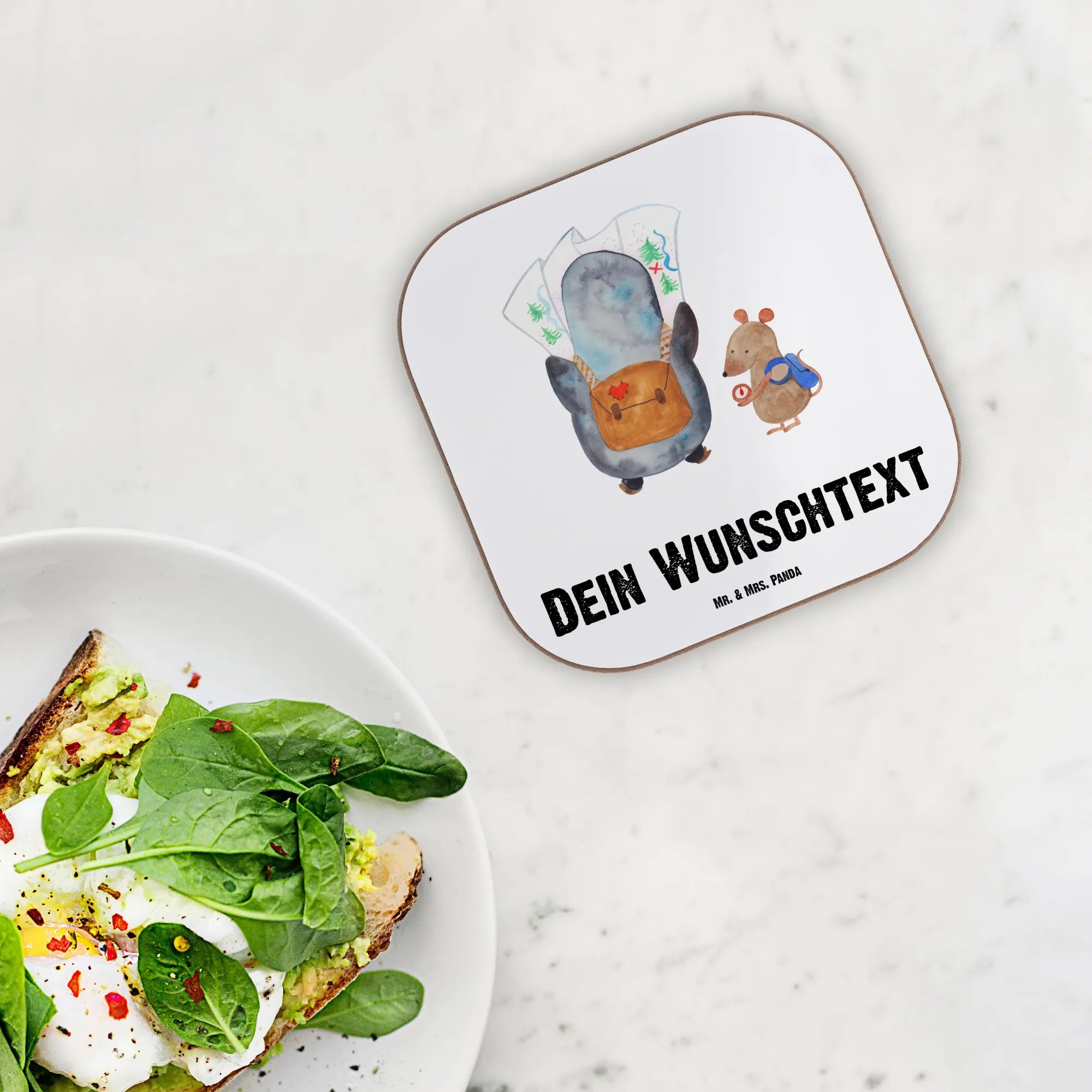 Personalisierte Untersetzer Pinguin & Maus Wanderer