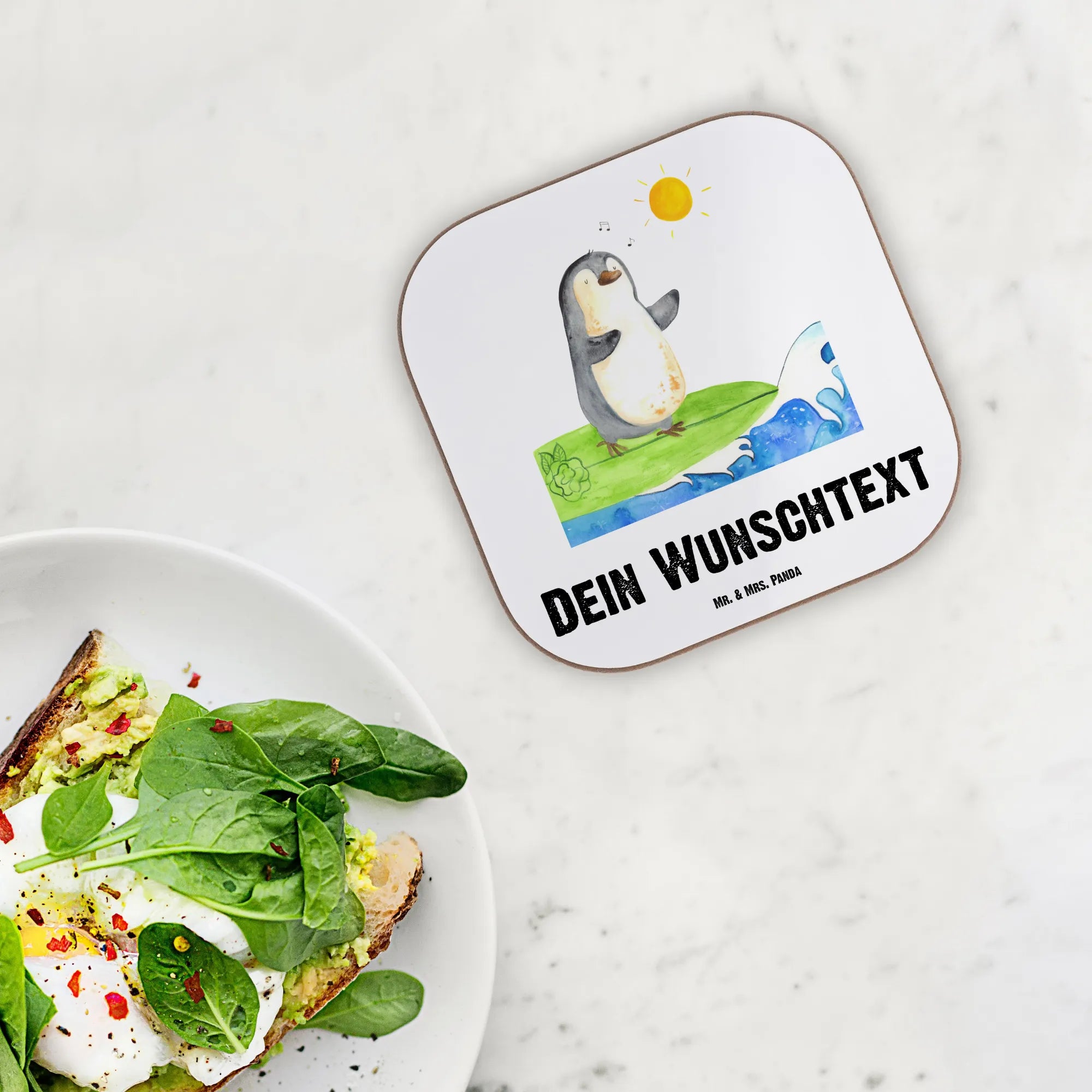 Personalisierte Untersetzer Pinguin Surfer – Mr. & Mrs. Panda