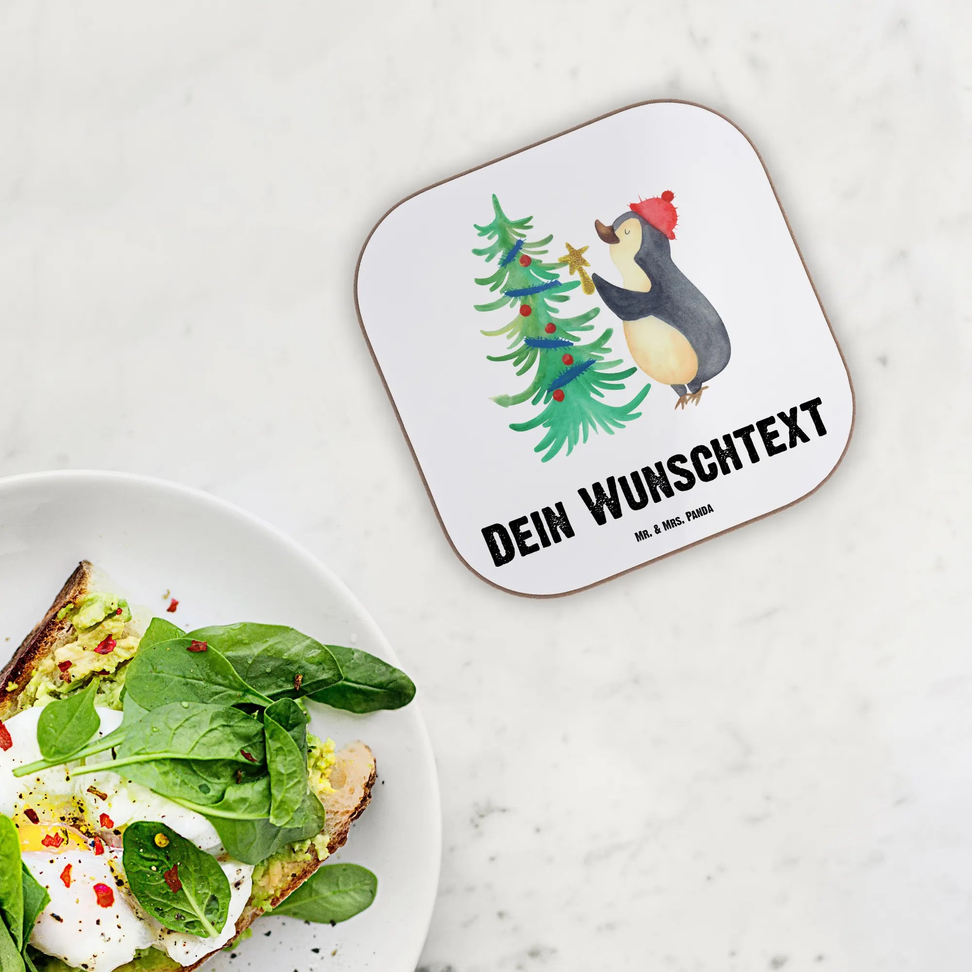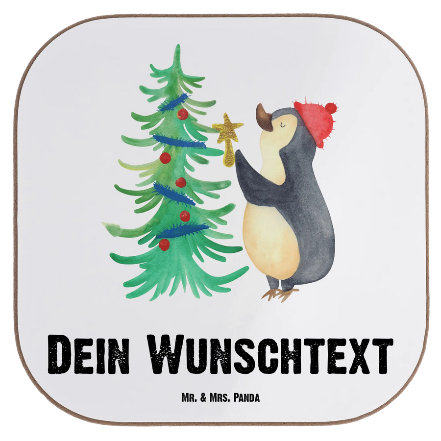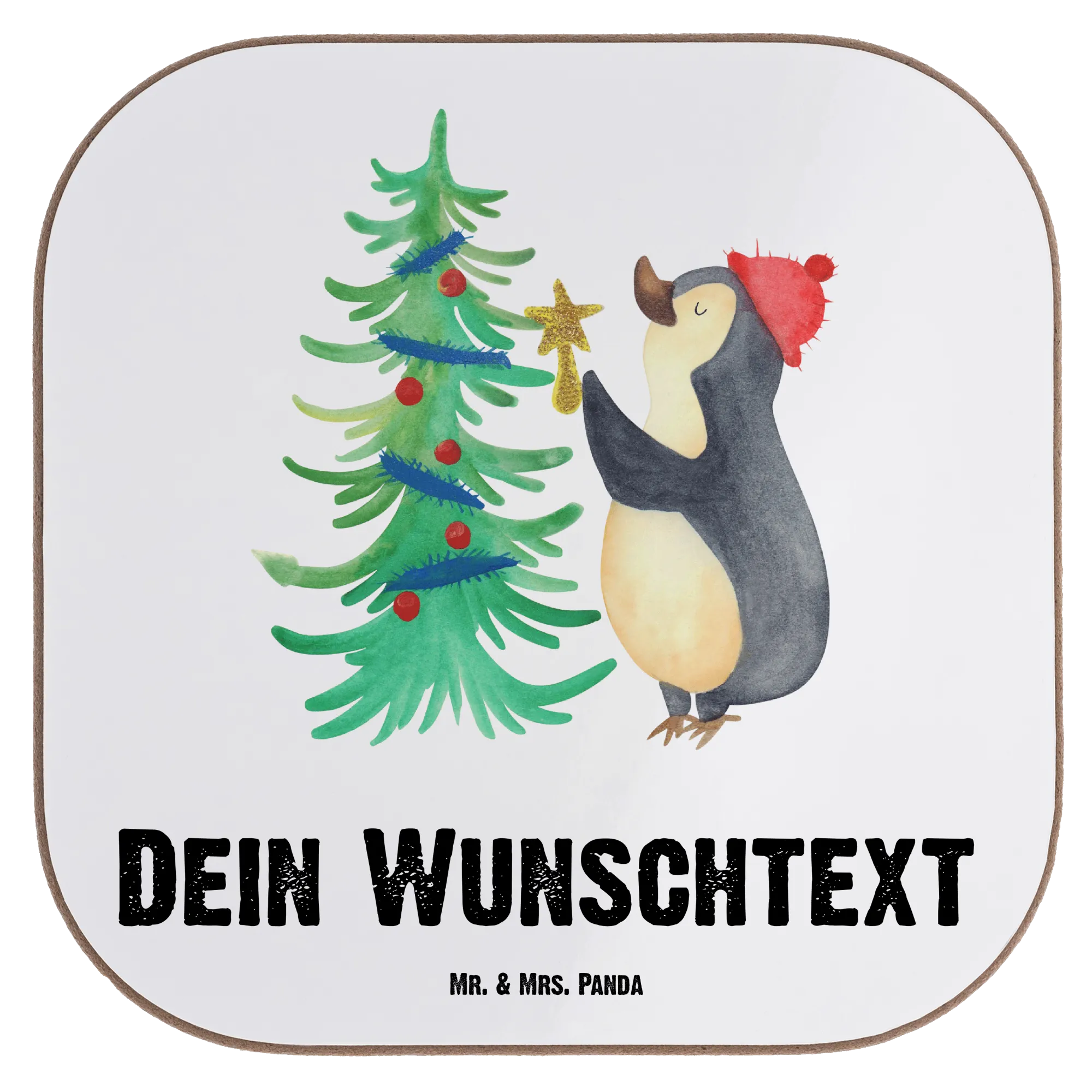 Personalisierte Untersetzer Pinguin Weihnachtsbaum
