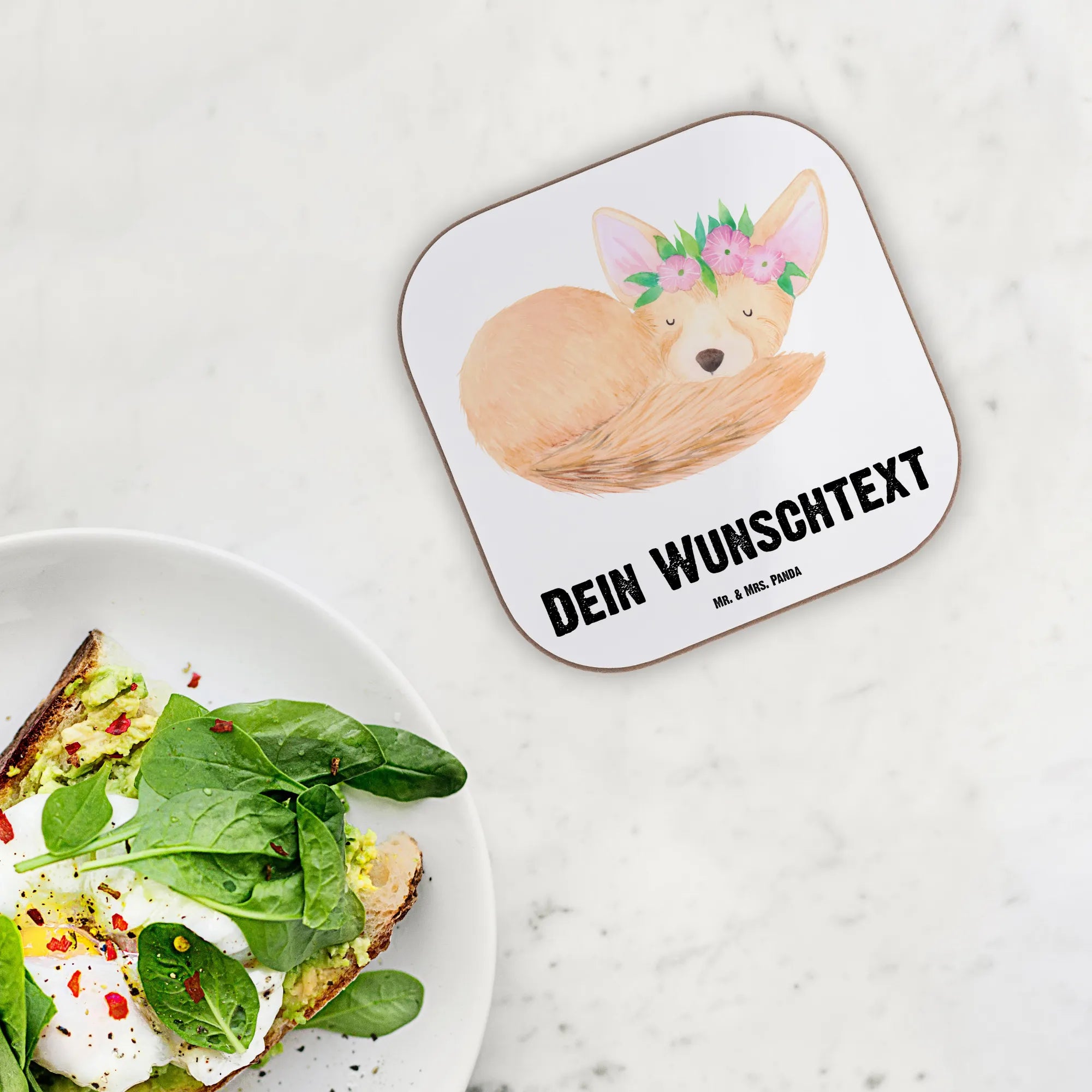 Personalisierte Untersetzer Wüstenfuchs Blumenkranz