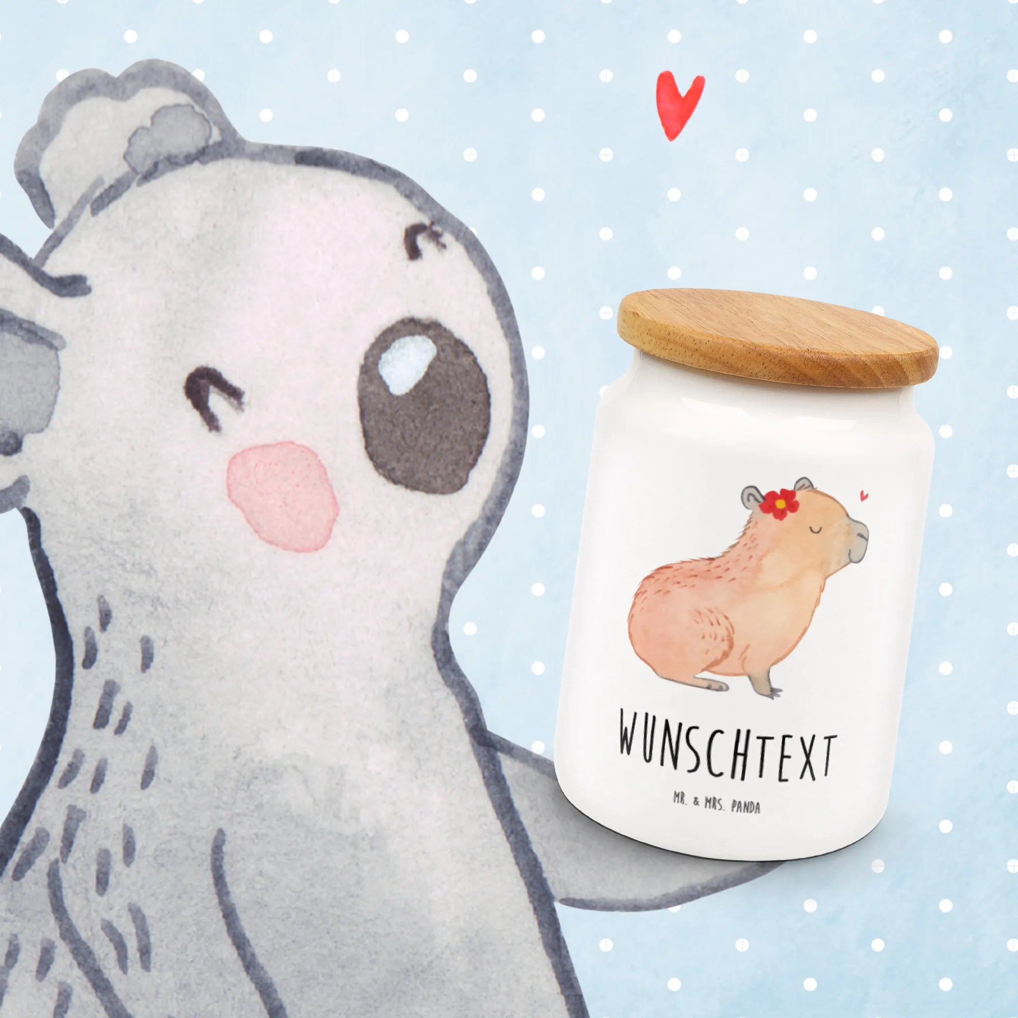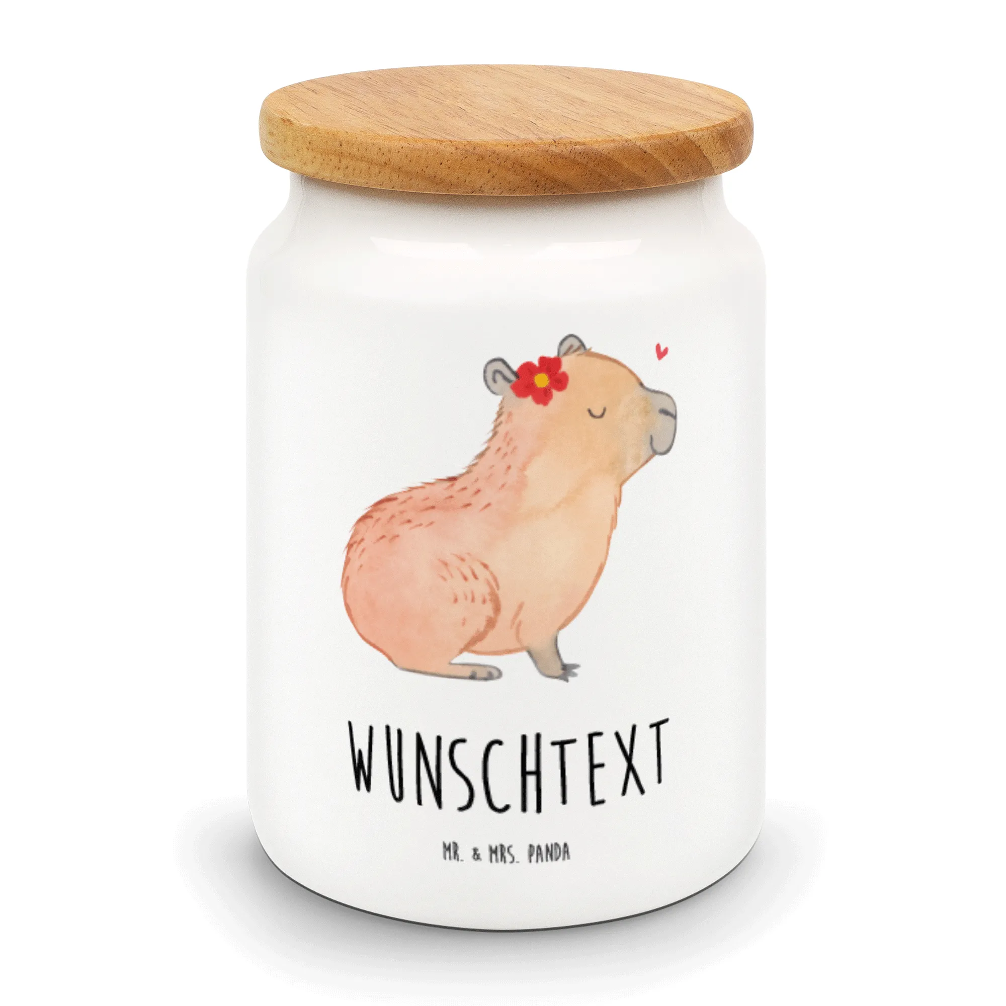 Die personalisierte Vorratsdose "Capybara Blume" von Mr. & Mrs. Panda ist nicht nur ein praktisches Aufbewahrungsaccessoire, sondern auch ein absolutes Highlight für jeden animal-liebenden Menschen. Mit einem charmanten Capybara, das sanft mit einer blühenden Blume im Haar dümpelt, bringt diese Dose nicht nur gute Laune, sondern zaubert auch ein Lächeln auf jedes Gesicht. Egal ob Du Kekse, Süßigkeiten oder andere kleine Leckereien darin aufbewahrst, die Dose verleiht Deinem Zuhause eine farbenfrohe Note.