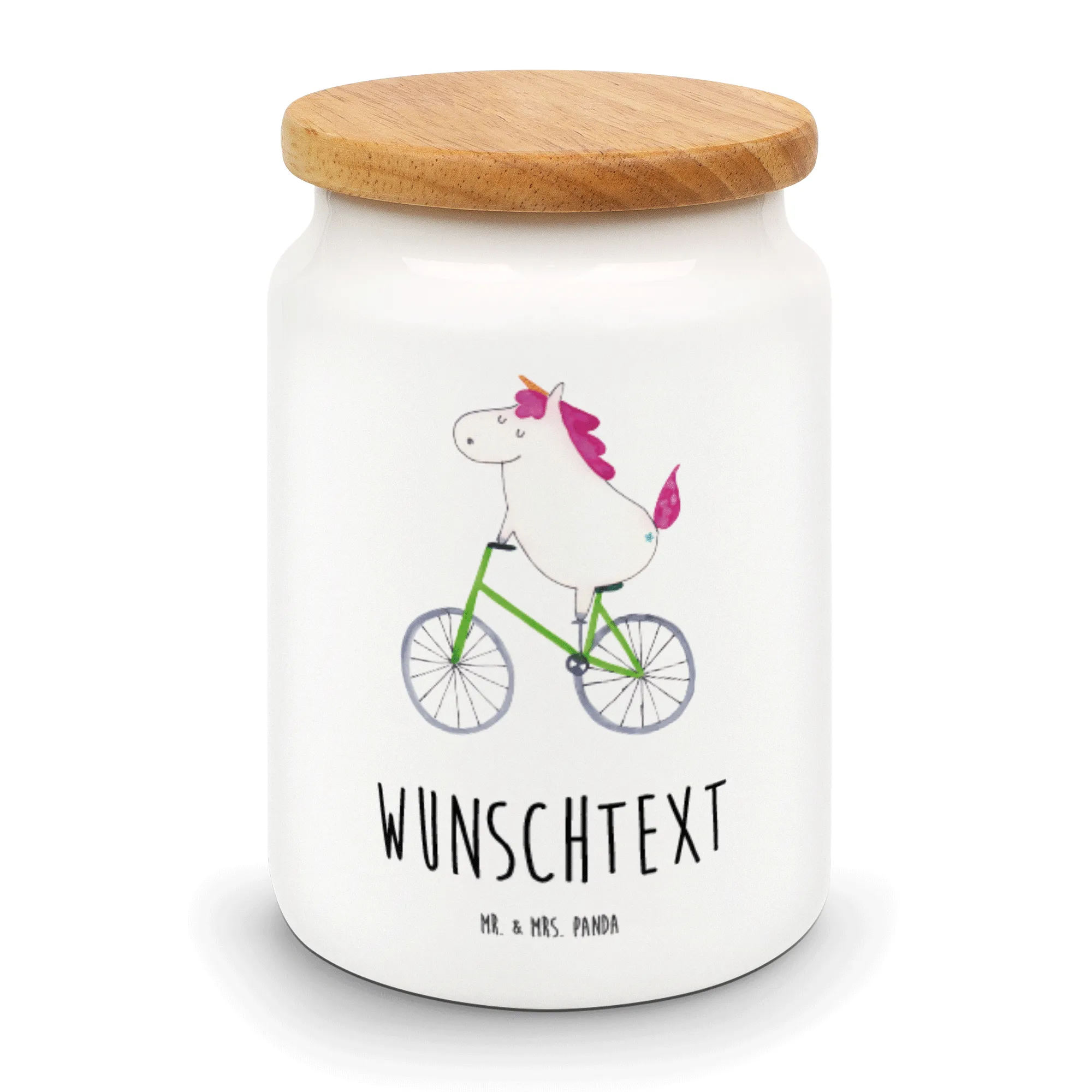 Personalisierte Vorratsdose Einhorn Radfahrer