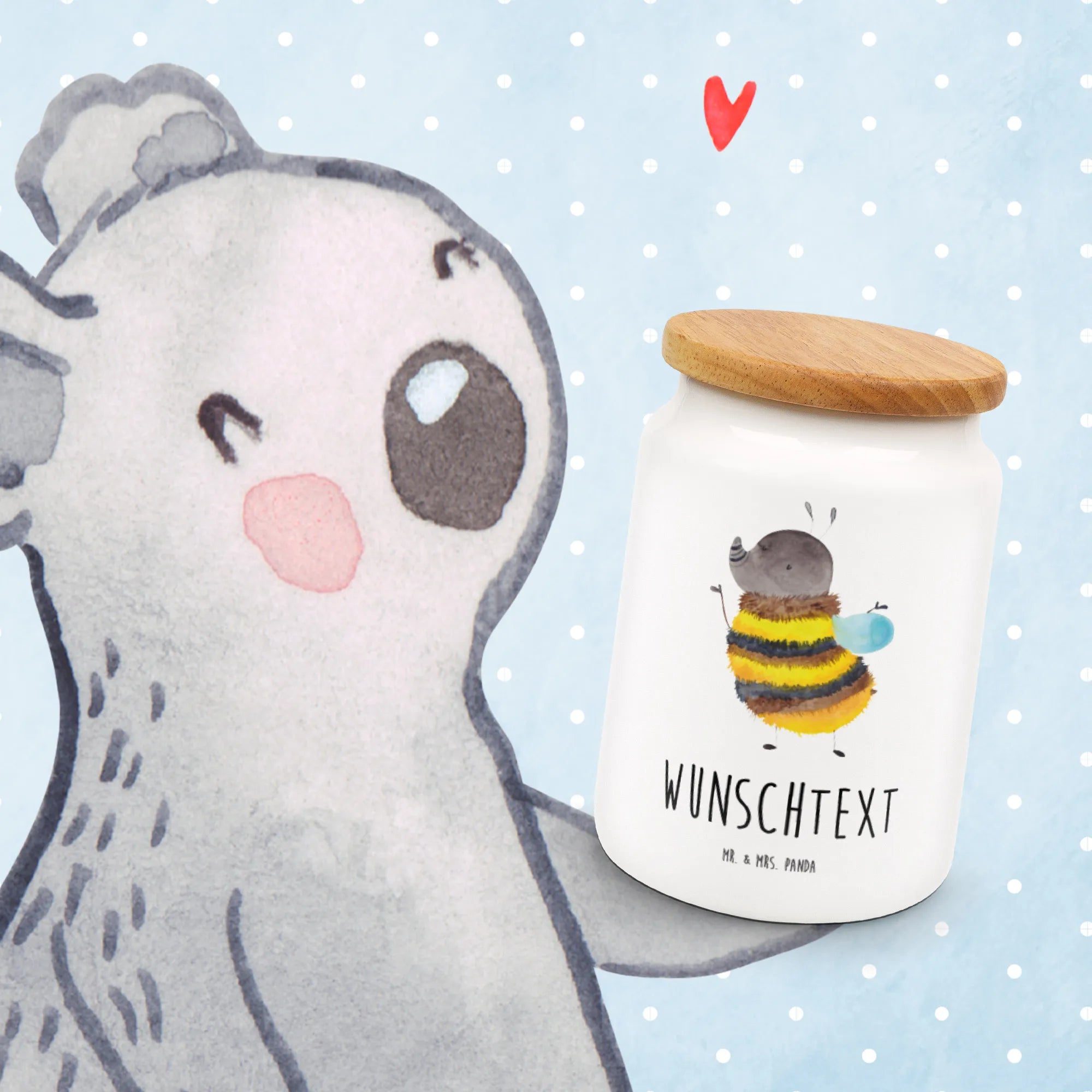 Die personalisierte Vorratsdose mit dem flauschigen Hummel-Motiv von Mr. & Mrs. Panda ist mehr als nur ein Aufbewahrungsbehälter – sie ist ein echtes Highlight in deiner Küche! Mit ihrer liebevollen Gestaltung zaubert sie jedem ein Lächeln ins Gesicht und bringt gute Laune beim Naschen. Diese Keksdose ist perfekt geeignet, um Plätzchen, Süßigkeiten oder Snacks stilvoll zu verstauen und gleichzeitig einen fröhlichen Akzent zu setzen.