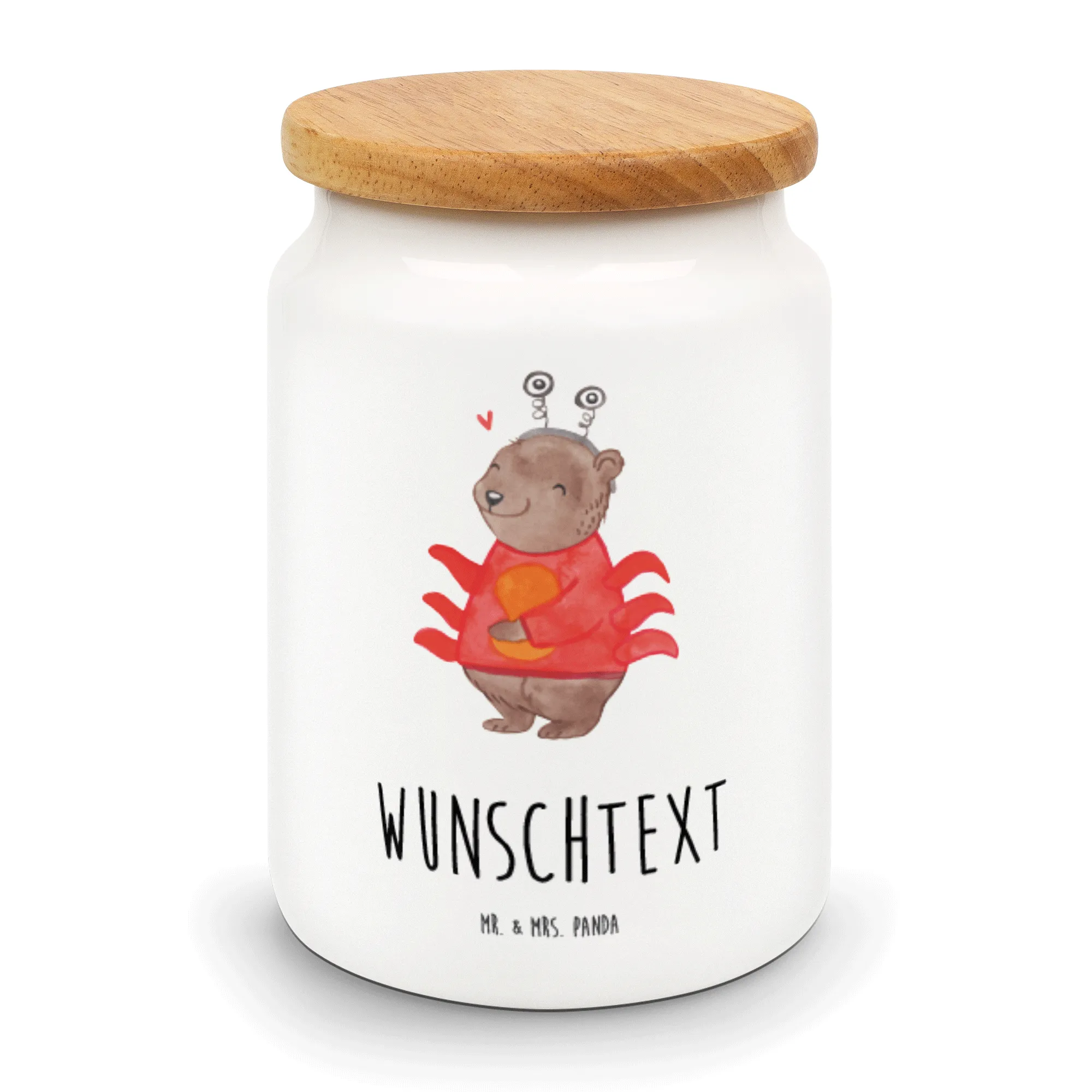 Die personalisierte Vorratsdose mit dem tollen Krebs-Motiv ist das perfekte Geschenk für all jene, die an die Magie der Astrologie glauben und ihr Sternzeichen lieben. Diese liebevoll gestaltete Dose aus hochwertiger Keramik ist nicht nur ein echter Hingucker in der Küche, sondern auch ein ganz persönliches Andenken. Das niedliche Krebsmotiv zeigt einen charmanten Bären in einem roten Krebskostüm, der mit einem orangefarbenen Herz in den Pfoten und fröhlichem Ausdruck sofort gute Laune verbreitet. Auf der Dose prangt der Slogan: Krebs: Sanft wie der Mond, tief wie das Meer.