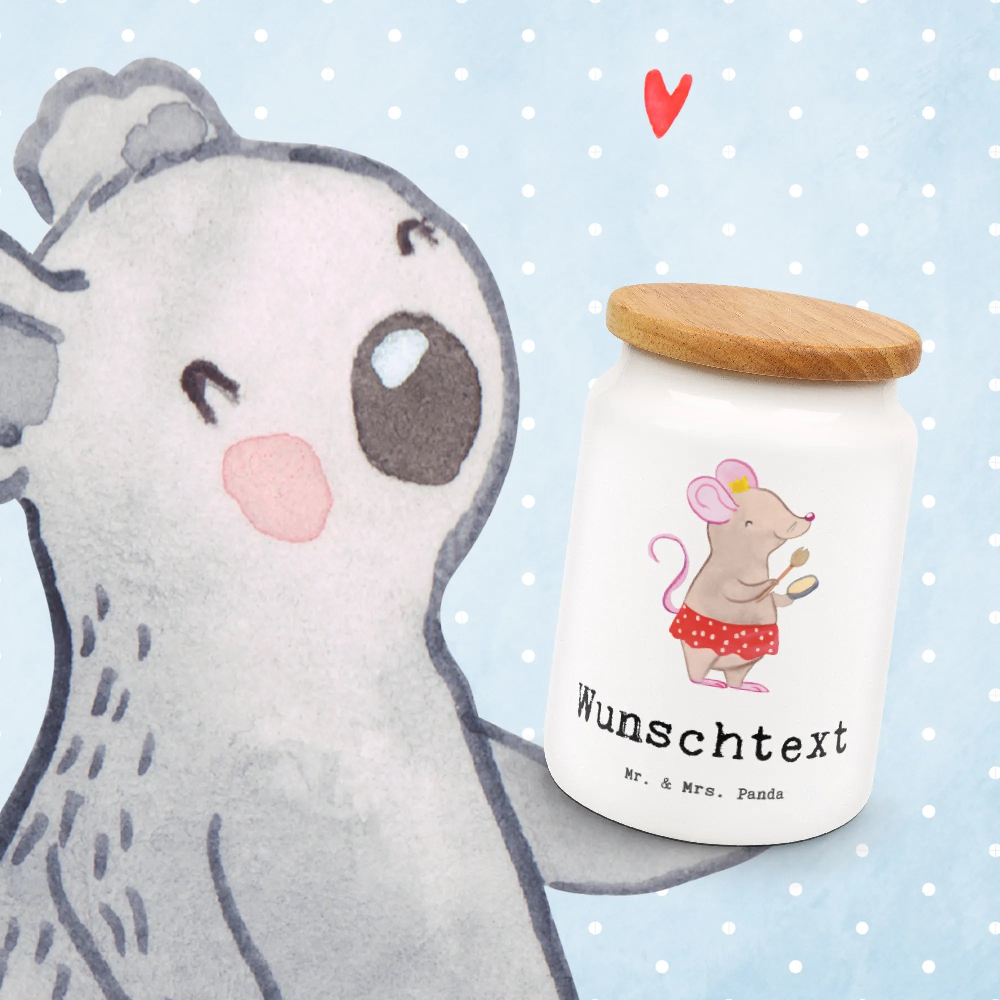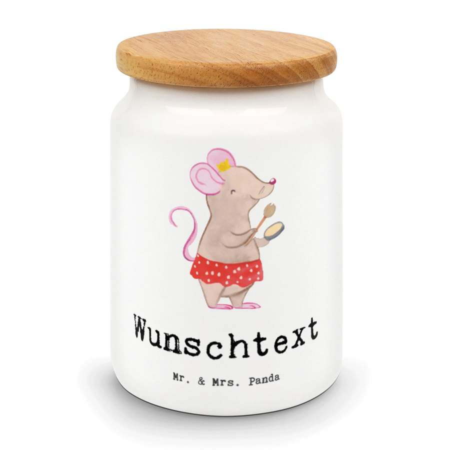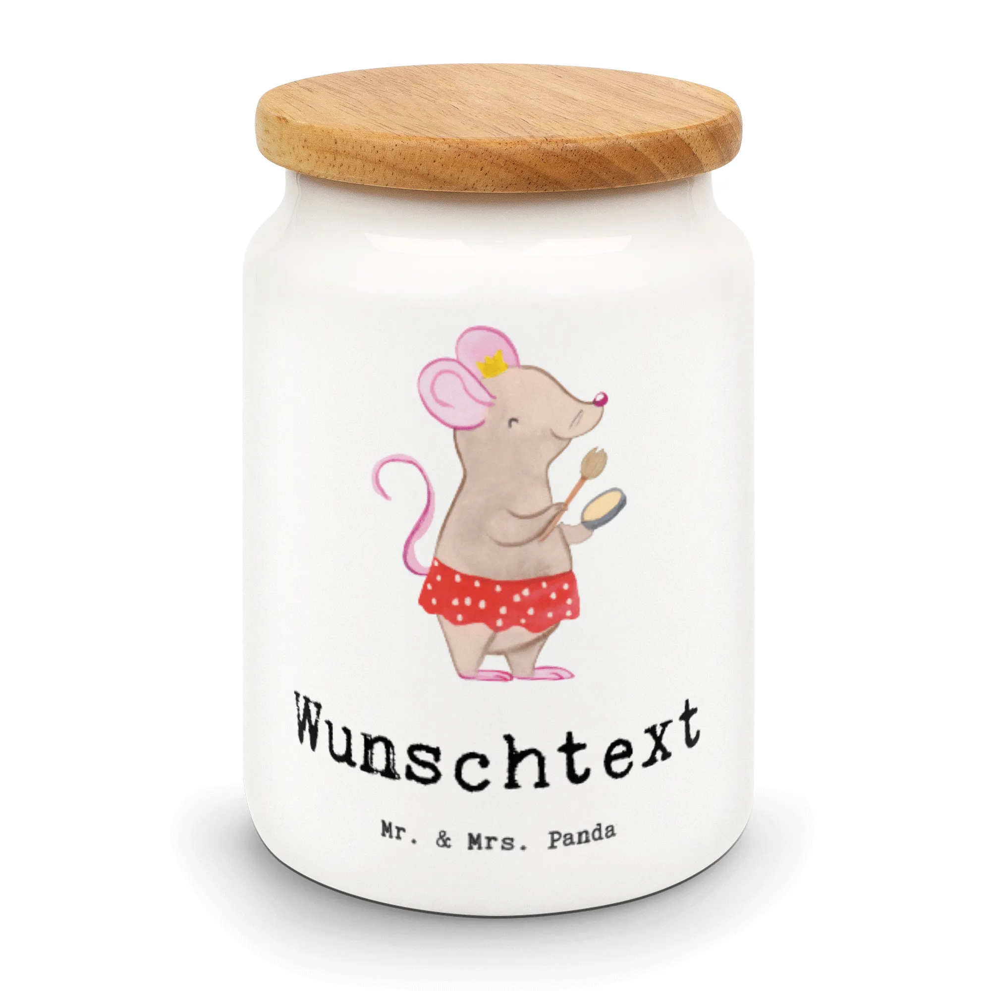 Die personalisierte Vorratsdose von Mr. & Mrs. Panda ist nicht nur schön, sondern auch praktisch. Mit einer Höhe von 145 mm und einem Durchmesser von 95 mm bietet sie ausreichend Platz für deine Zutaten oder Snacks. Die Füllmenge von 650 ml macht sie ideal für ein großzügiges Aufbewahren. Diese Dose ist aus hochwertiger Keramik gefertigt und kommt mit einem massiven Holzdeckel, der mit einer Kunststoffdichtung versehen ist, um die Frische deiner Lebensmittel zu garantieren. Du kannst die Vorratsdose nach deinen Wünschen personalisieren, sodass sie einen besonderen Platz in deiner Küche einnehmen kann. Egal ob für Zucker, Mehl oder kleine Snacks, die liebevollen Motive und Sprüche von Mr. & Mrs. Panda verleihen deiner Küche einen ganz besonderen Charme. Zudem ist die Dose pflegeleicht, denn sie ist spülmaschinengeeignet.