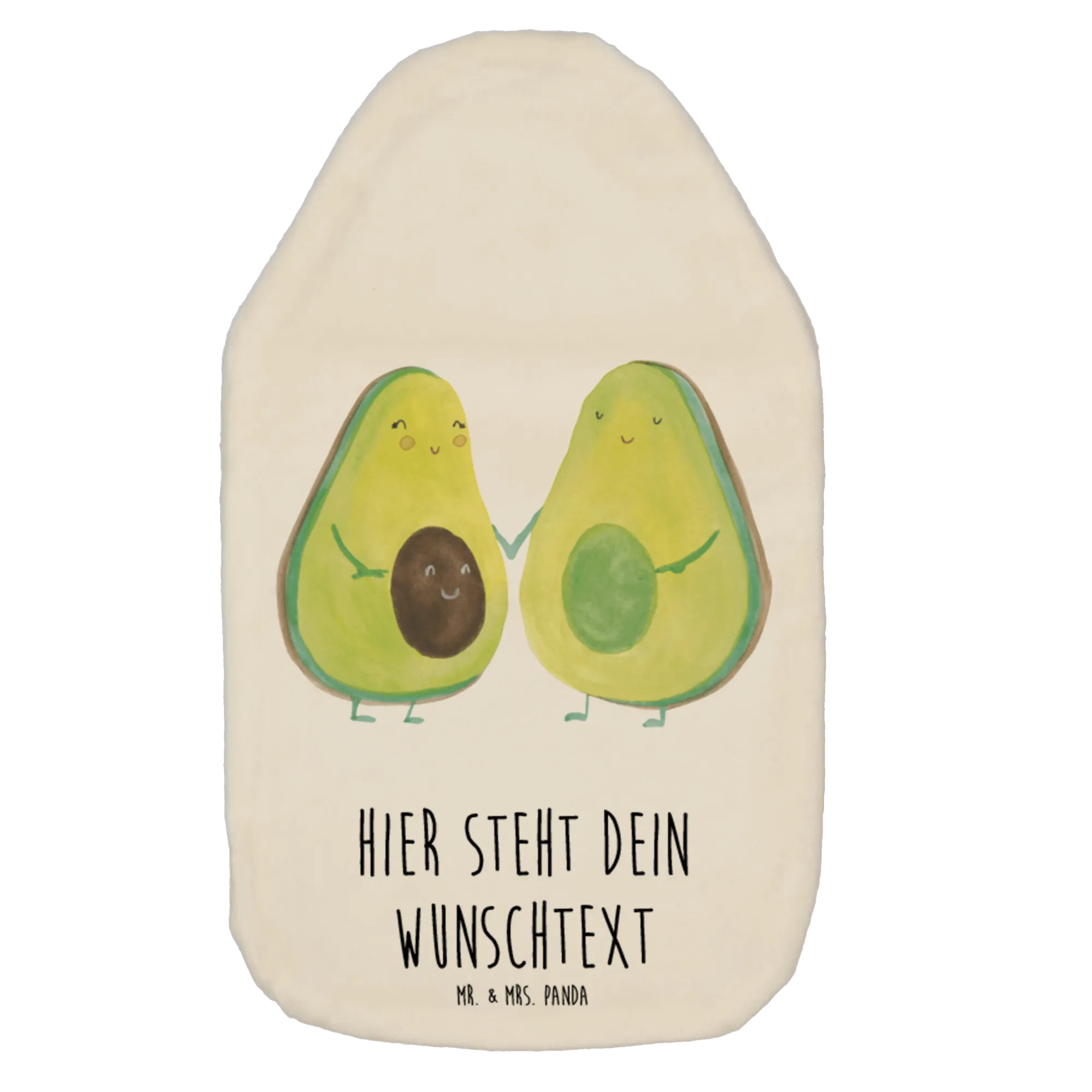 Die personalisierte Wärmflasche mit dem süßen Avocado Pärchen von Mr. & Mrs. Panda ist das perfekte Geschenk für viele besondere Anlässe im Leben! Ob zur Babyshower, zur Hochzeit oder einfach nur so, um seinen Lieben zu zeigen, wie sehr man sie schätzt – diese kuschelige Wärmflasche bringt nicht nur Wärme, sondern auch eine große Portion Liebe in jedes Zuhause. Handgezeichnet mit viel Herz zeigt das bezaubernde Design ein Avocado Pärchen, das sich an den Händen hält und verliebt anschaut: einfach charmant!
