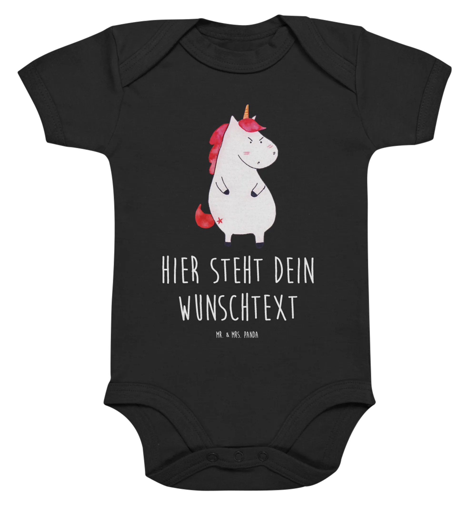 Das wütende Einhorn steht nicht nur für ein positives Kinderlächeln, sondern auch für die Unbekümmertheit, die Kinder ausstrahlen. Es ist die ideale Geschenkidee für frischgebackene Eltern, die auf der Suche nach etwas Einzigartigem sind. Verschenke Freude und eine süße Botschaft mit unserem personalisierten Baby Body! Die Kombination aus lustigem Design und hochwertiger Verarbeitung macht diesen Body zu einem unverzichtbaren Teil der Babykleidung. Jedes einzelne Motiv wird dabei von Mrs. Panda mit viel Liebe von Hand gezeichnet.
