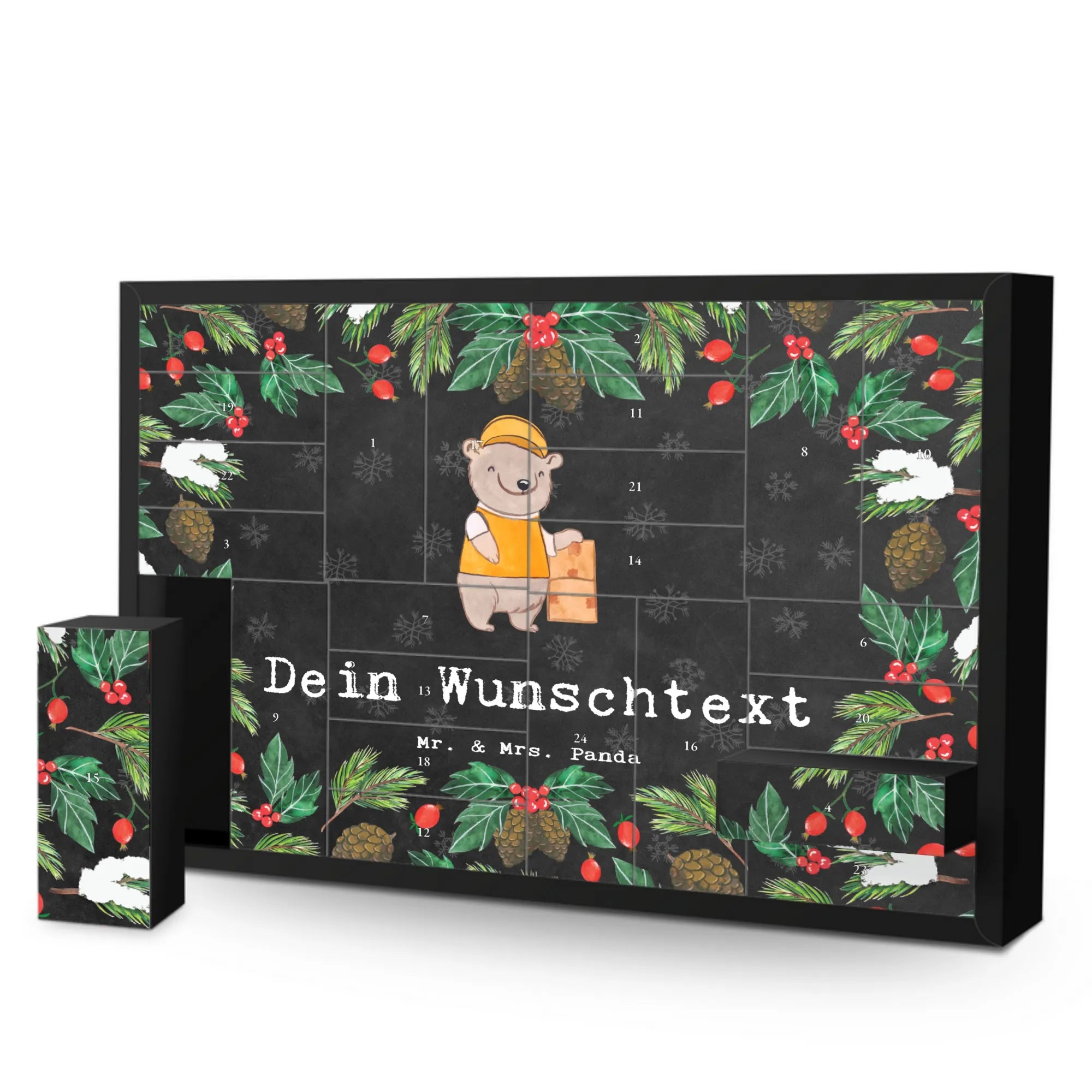 🐼 PERSONALISIERTER ADVENTSKALENDER: 24 Schachteln, personalisierbar, seidenmatter Druck, inkl. Aufstellvorrichtung.