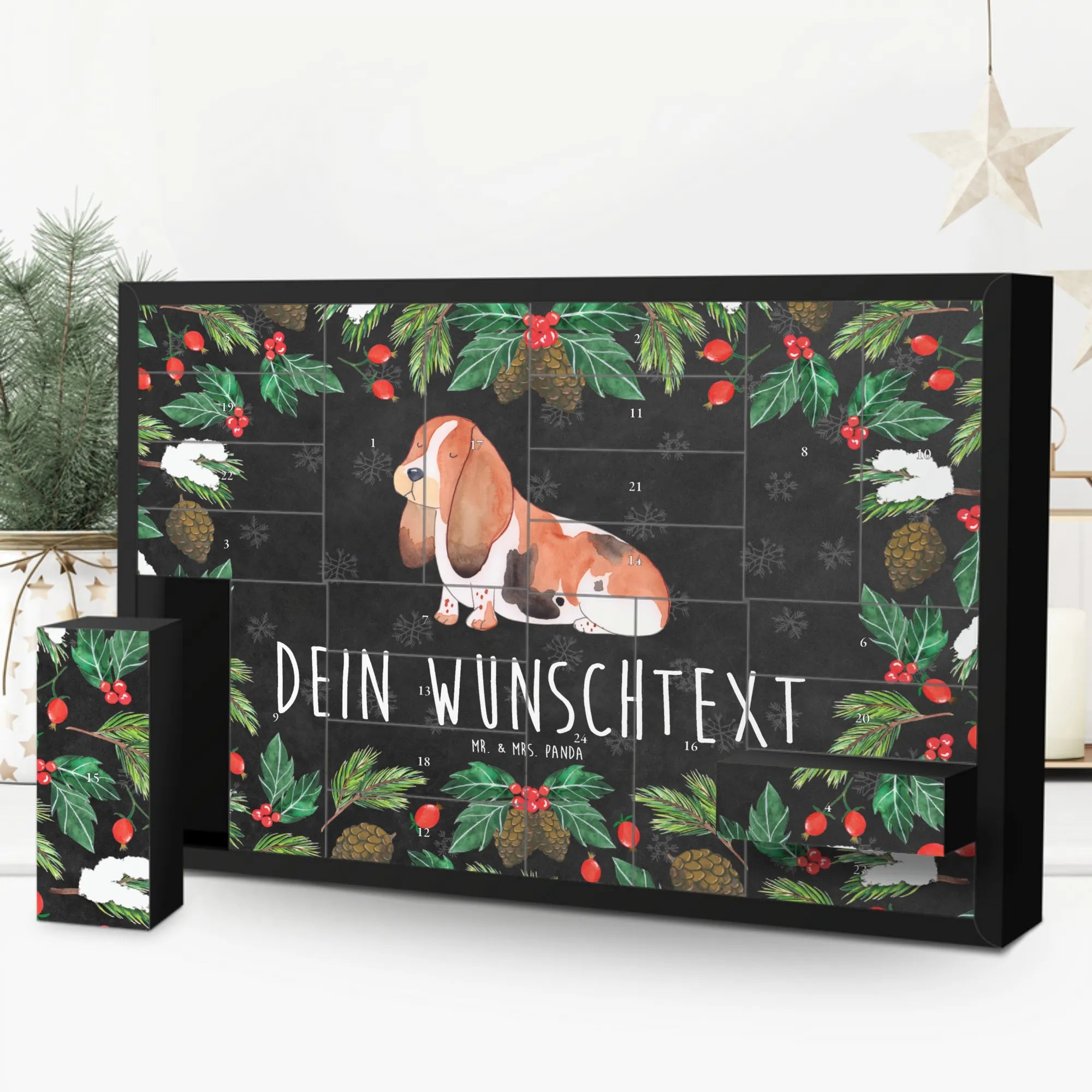 Der personalisierte befüllbare Adventskalender mit dem süßen Hundemotiv des Basset Hound von Mr. & Mrs. Panda ist das perfekte Geschenk für alle Hundeliebhaber und Tierfreunde. Er ist nicht nur ein Highlight in der Adventszeit, sondern auch eine liebevolle Art, die Wartezeit bis Weihnachten zu versüßen. Mit diesem wunderschönen Adventskalender kannst du deiner Kreativität freien Lauf lassen und ihn ganz nach deinem Geschmack befüllen. Egal, ob du Süßigkeiten, kleine Geschenke oder liebe Botschaften hineinlegst – jeder Tag wird zu einer besonderen Überraschung für dich oder deine Liebsten.