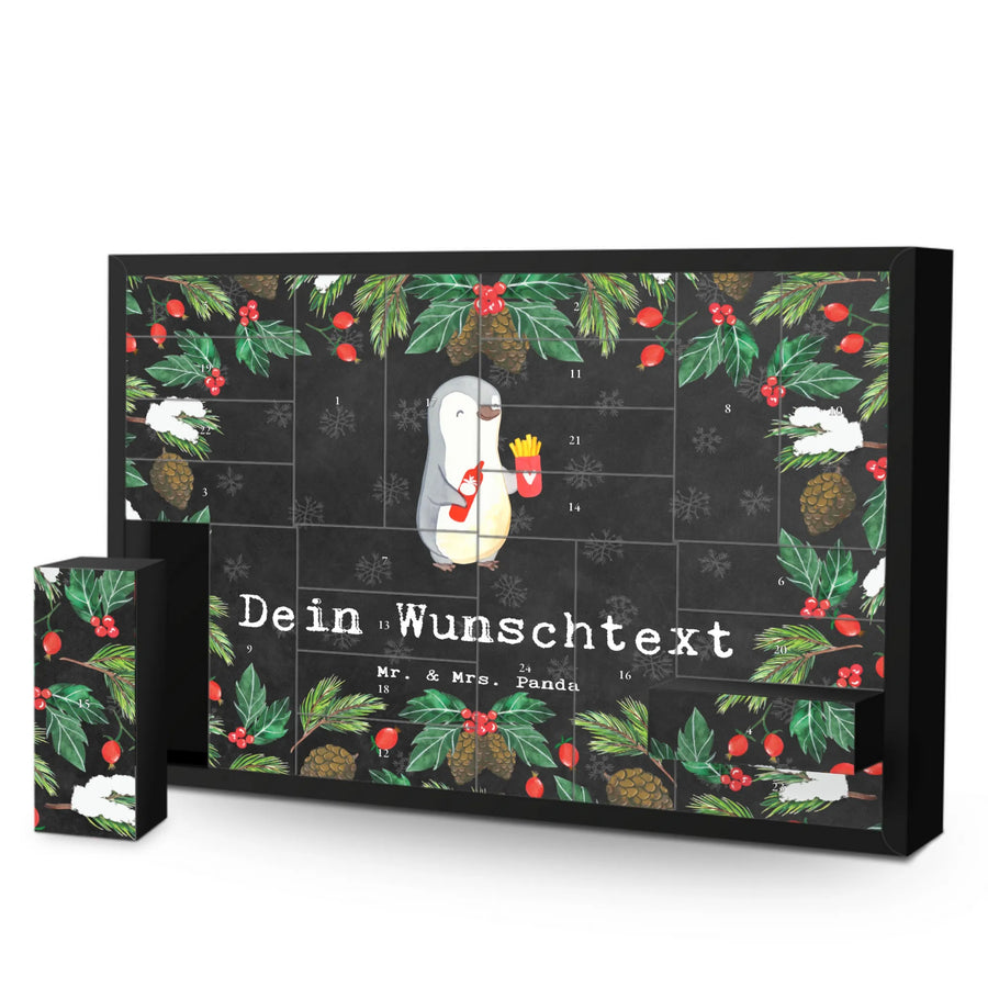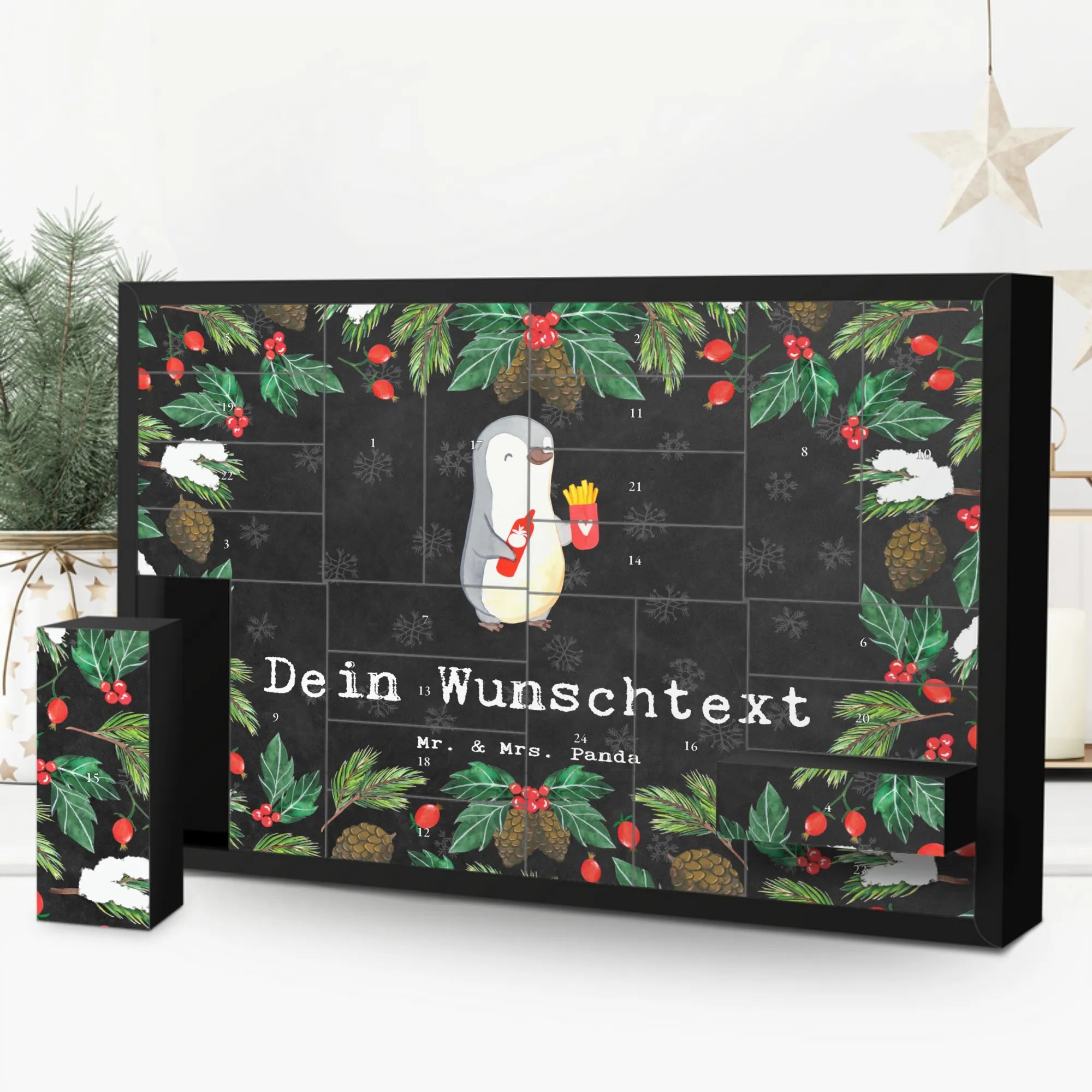 Der Adventskalender ist mit dem liebevollen Motiv "Imbissbesitzer aus Leidenschaft" verziert und zeigt einen süßen Pinguin, der Pommes und Ketchup hält. Er ist nicht nur dekorativ, sondern auch praktisch, denn Du kannst ihn ganz nach Deinen Vorstellungen füllen!