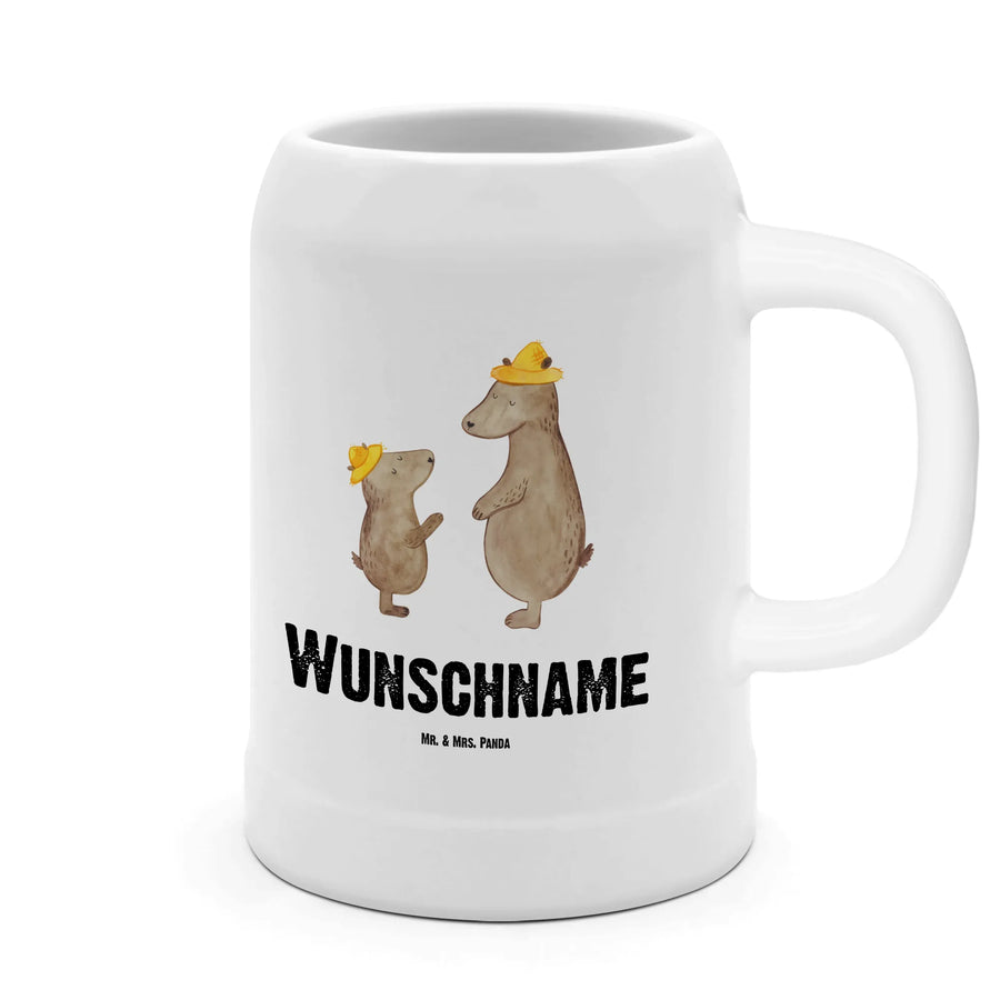 Mit einem liebevollen Motiv, das zwei charmante Bären zeigt, die sich herzlich anlächeln, bringt dieser Bierkrug nicht nur Freude, sondern auch Erinnerungen an unvergessliche Momente mit der Familie. Dieser Bierkrug ist aus robustem Steingut gefertigt, hat eine Füllmenge von 500 ml und ist ideal für gemütliche Abende im Biergarten oder zu Hause.
