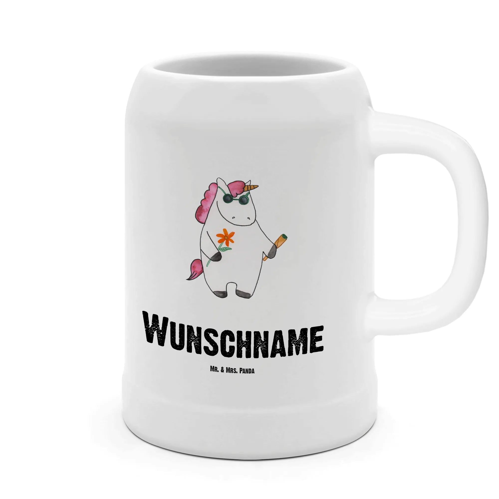 Der personalisierte Bierkrug Einhorn Woodstock von Mr. & Mrs. Panda ist das perfekte Geschenk für alle, die zauberhafte Einhörner und unvergessliche Partynächte lieben! Mit einem praktischen Fassungsvermögen von 500 ml ist dieser robuste Steingutkrug ideal für kühle Biergartenmomente zuhause. Der Aufdruck zeigt unser einzigartiges Einhorn, das mit Sonnenbrille und einem Joint in der Hand chillt. Der lustige Spruch 'Für Risiken und Nebenwirkungen fragen Sie das Einhorn.' bringt sicher jeden zum Lachen und sorgt für gute Stimmung. Egal ob für den besten Freund, die beste Freundin oder einfach mal für dich selbst – dieser Bierkrug bringt das Festival-Feeling zu dir nach Hause!