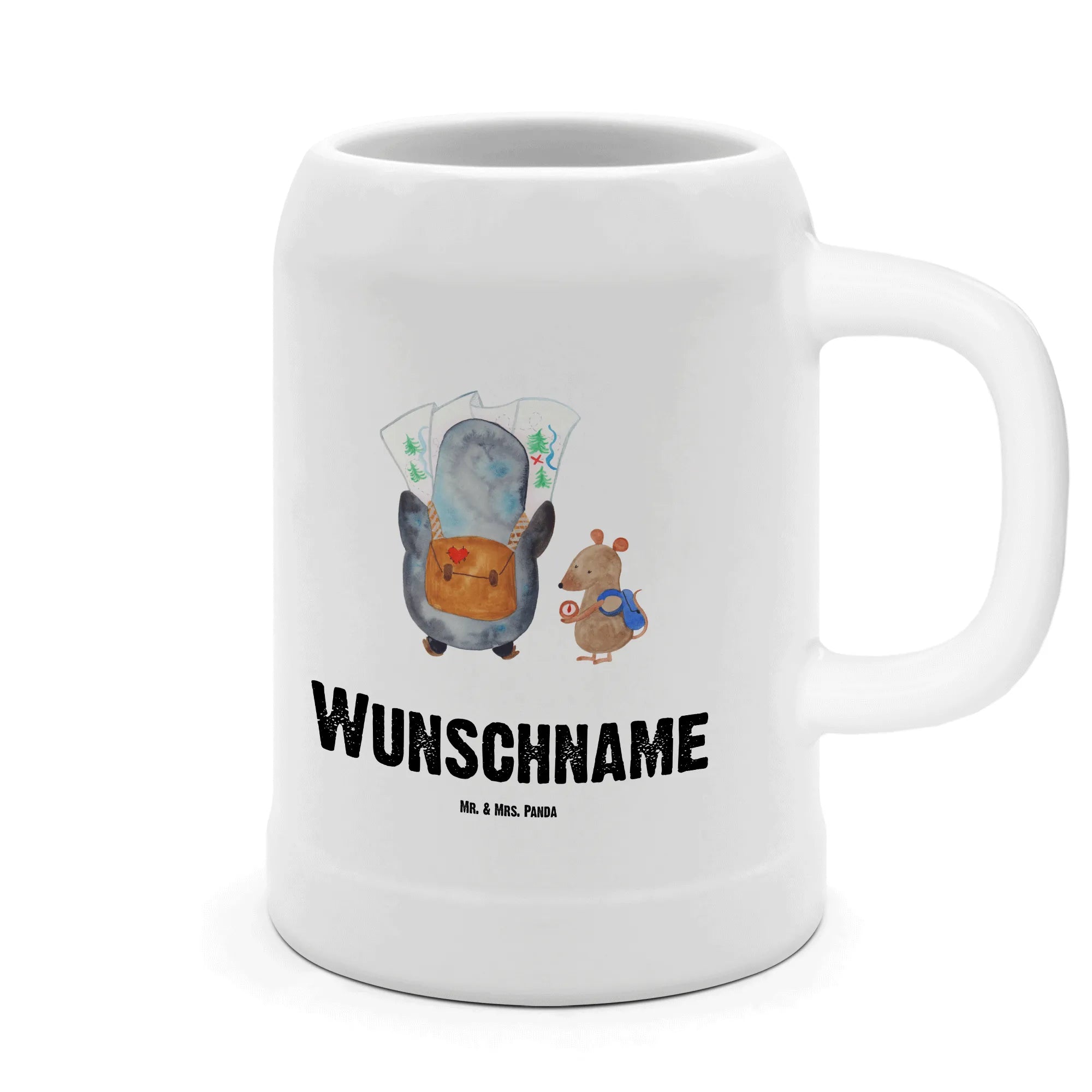 Personalisierter Bierkrug Pinguin & Maus Wanderer