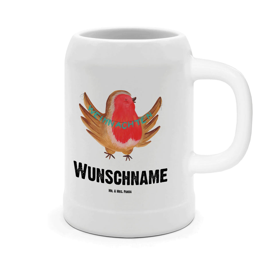 Personalisierter Bierkrug Rotkehlchen Weihnachten – Mr. & Mrs. Panda