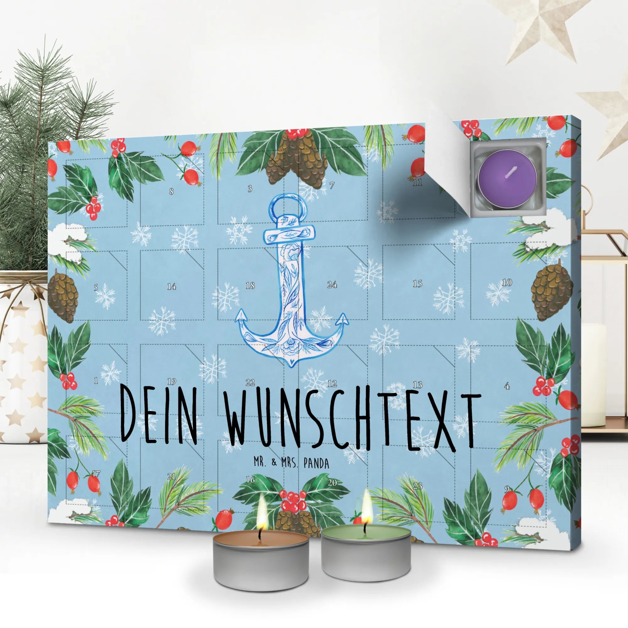 Personalisierter Duftkerzen Adventskalender Anker Blau - Kreidetafel